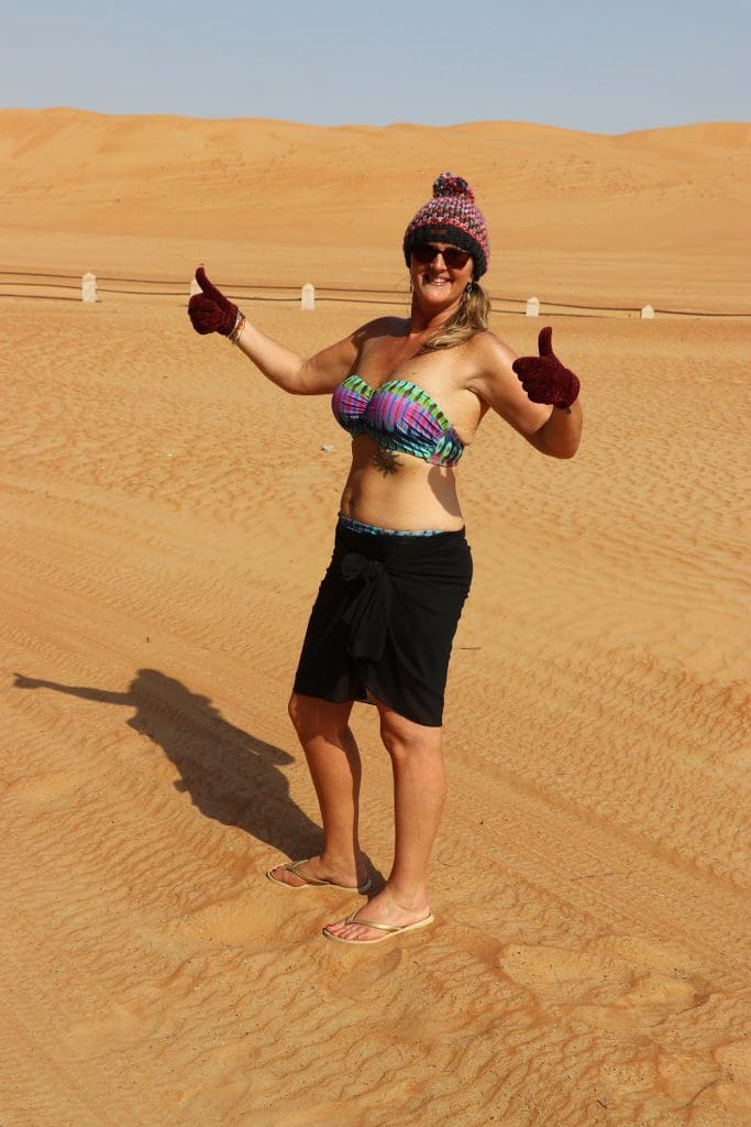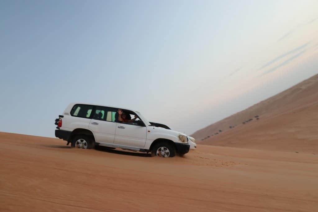 Bye Bye Wahiba Sands, we gaan de woestijn weer uitracen! Jolanda scheurt ook een stuk door de woestijn, een bijzonder event wat je niet mag missen. De meeste nemen hier een gids voor de heen- en terugweg omdat vele de uitdaging alleen niet aandurven. Wij watjes? Echt niet, gewoon met z’n tweetjes op pad en het avontuur opzoeken.