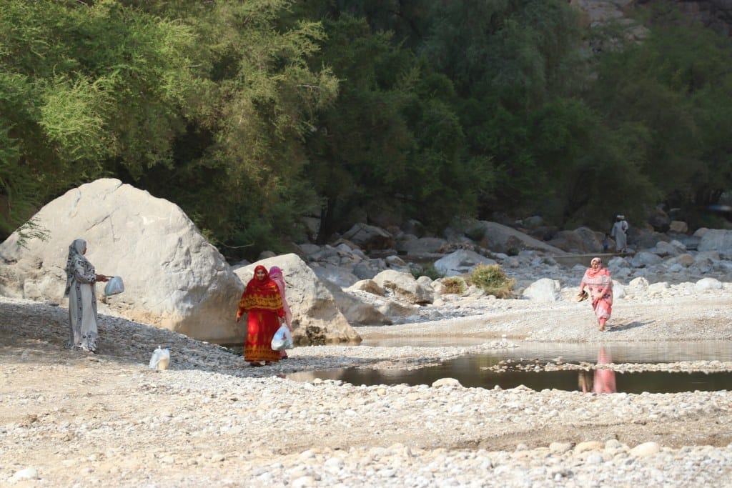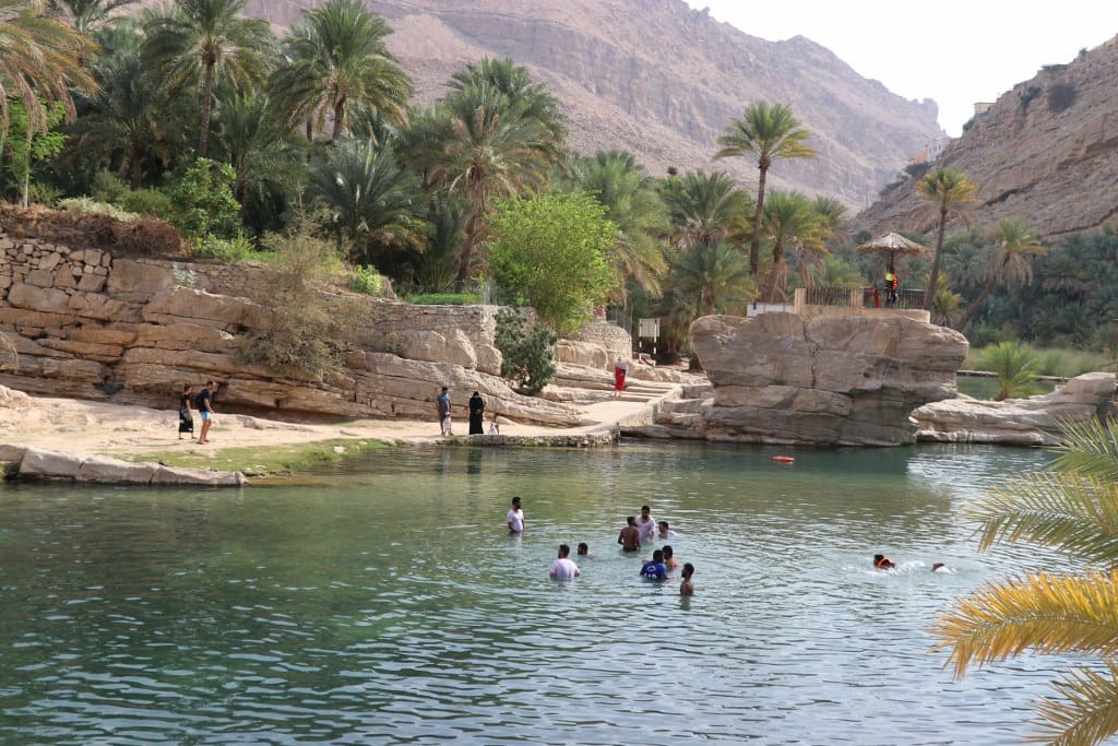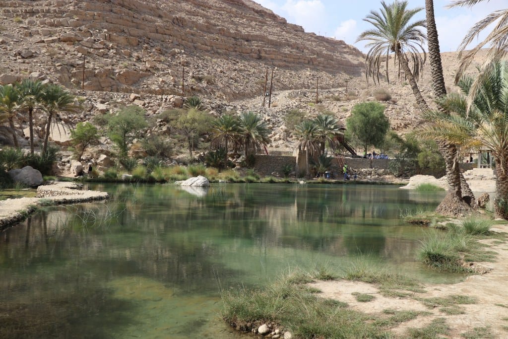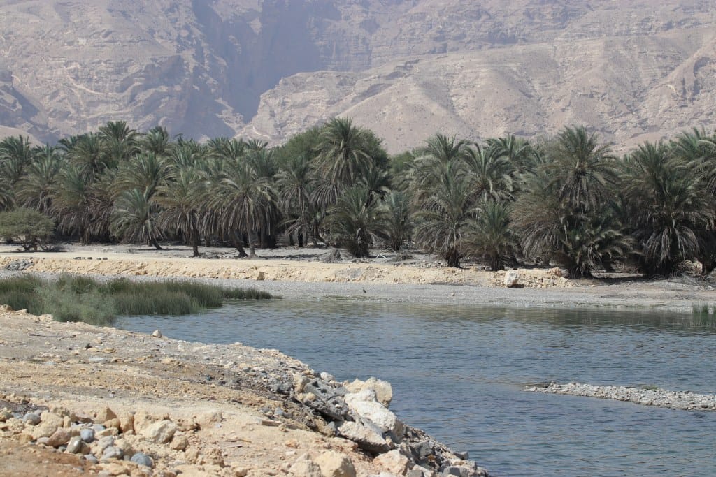 We verlaten Nizwa weer en rijden verder richting onze eindbestemming. Onderweg zouden we in een plaatsje nog wat bananen plantages kunnen vinden maar die hebben we nergens kunnen ontdekken. Was wel weer “Moskee tijd”, dus in het voorgelegen waterstroompje even de voetjes, onderbeentjes onderarmen en het gezichtje wassen. Wel even de schoentjes/sandalen uit….. Uit respect schieten we hiervan geen foto’s.