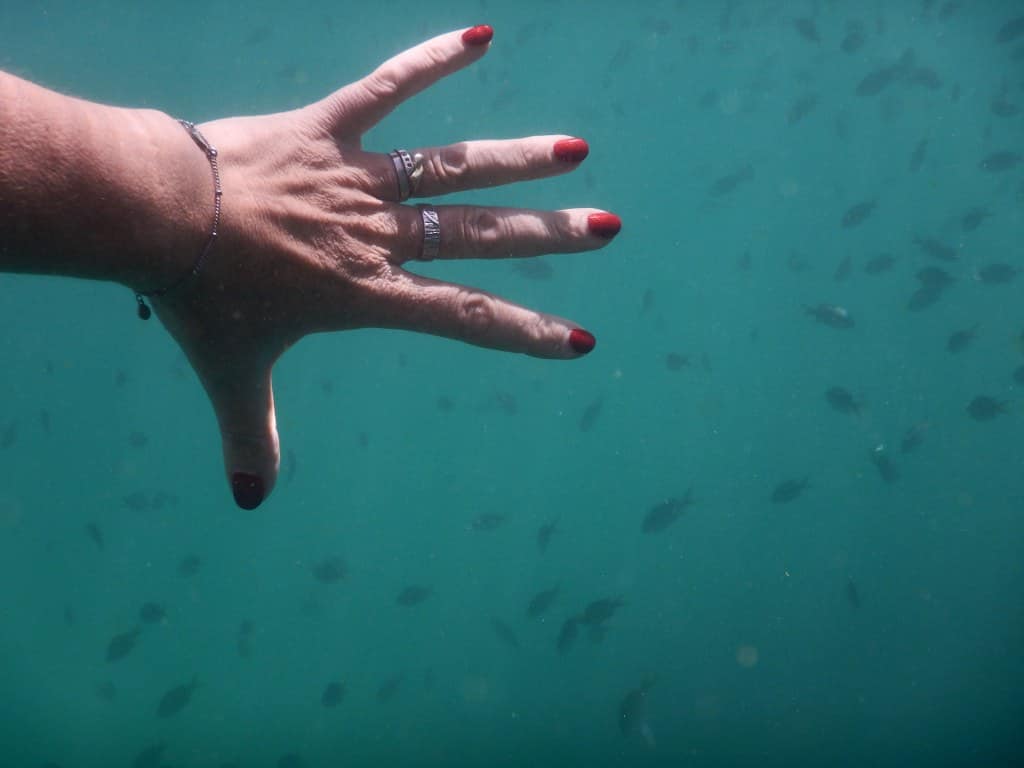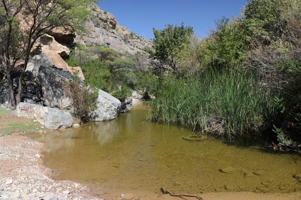 Zwembroek aan, waterschoentjes aan en snel dat water in. Heerlijk! We moeten nog een klein half uur zwemmen alvorens we via een erg smalle kloof (hoofd onder water, anders kun je er niet komen) de waterval bereiken. Helaas ons waterdicht cameraatje vergeten. Op you-tube hebben we wel een filmpje gevonden wat een redelijk beeld geeft over onze “zwemtocht”! Dat was heerlijk en slippery op de rotsen. Na het zwemmen weer terug in de bezwete wandelkleding. Terug naar de auto.