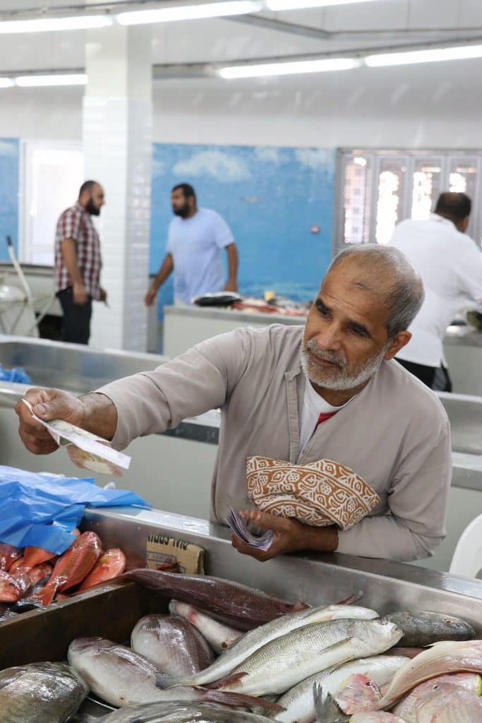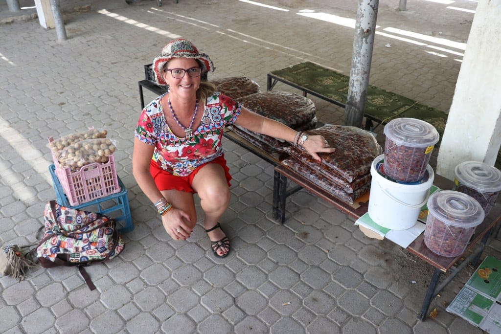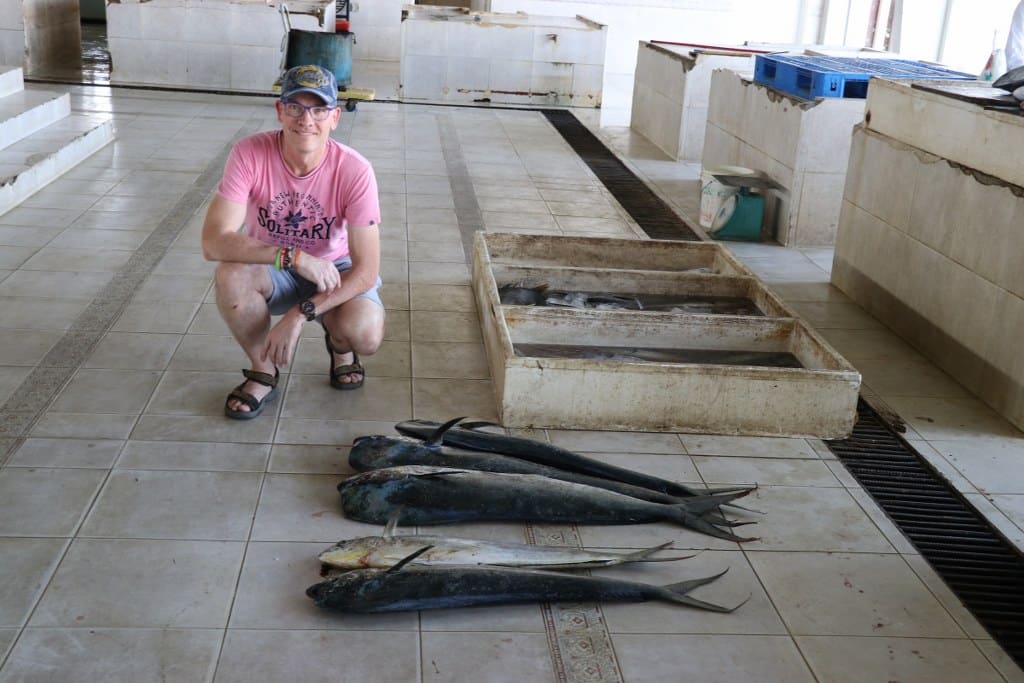 Dadels, dadels, dadels, je ziet en krijgt ze overal. Koffie, dan dadels! Thee, dan dadels! Dus op deze markt kopen we bij deze vriendelijke meneer een paar doosjes dadels. Gezond en lekker! Langs de vismarkt is ook de groente- en fruit markt, ook erg bijzonder echter qua geur beter te hebben dan de vismarkt!