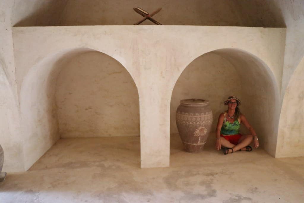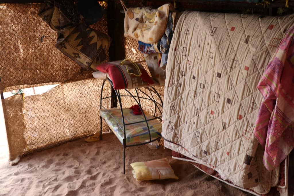 Het zomerkamp van Alila (wat overigens verrassing betekend), en verrassend is het hier zeker! Het gesteente van de gebouwen hier komt volledig uit de natuur. Ook het houtwerk komt van de bomen die in deze omgeving te vinden zijn, dit is tevens de reden dat het hier vroeger een stuk groener was dan nu. Vele bomen zijn gekapt voor de huizen. Ook hier is de klimaatverandering oorzaak van het “minder groen” zijn, temperaturen stijgen en regenval is beperkter dan ooit! Hieronder zie je een inham in een van de woningen, dit is een slaapkamertje voor kinderen en baby’s. In de wintermaanden kan het hier koud worden, tot zelfs net beneden het vriespunt, dus boden dergelijke ruimten enige vorm van bescherming tegen de kou.