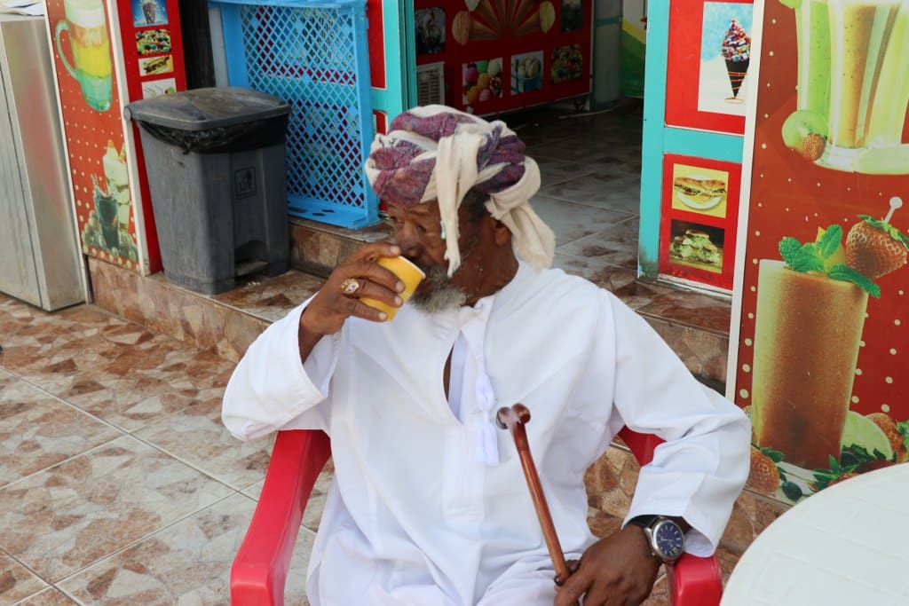 Een praatje met deze Omanier, leuk want hij begrijpt geen biet van ons en wij niet van hem.