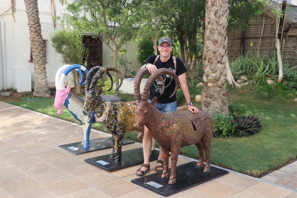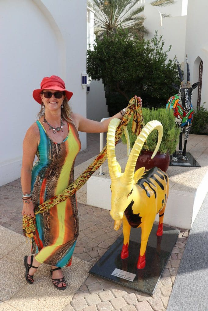 Na dit bezoek en een “hamburger lunch” gaan we met de auto naar Old Muscat, om een bezoek te brengen aan het Bait al Zubair museum. Geen direct hoogtepunt maar zeker de moeite waard. Prima ontsnapping aan de hitte buiten dus we maken aansluitend zeker ff gebruik van de “koffiecorner” van het museum. Zelfde kleurstijl en beide ram (sterrenbeeld!)………..