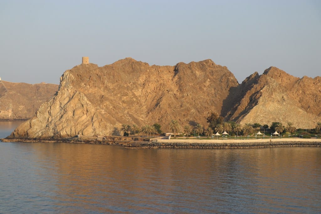 In ons hotel bevindt zich een Iraans restaurant, Shiraz! We boeken om 19.30 uur een tafeltje buiten (het is immers winter dus we kunnen lekker buiten zitten, iets wat in de zomer niet kan) om te genieten van de Iraanse keuken, een land wat we (nog) nooit bezochten maar wel op onze wishlist staat. Tevens boeken we voor morgenochtend nog een dolfijnen- en snorkeltrip in de Golf van Oman. Ook deze kans grijpen we met beide handen aan zodat we tot het laatste moment kunnen blijven genieten!We zitten heerlijk buiten, mooi uitzicht over Muscat en de Golf van Oman. Wat hebben we het toch slecht……..