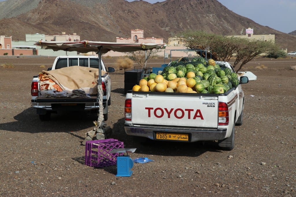 Watertrucks! Hier heeft bijna niemand een vast wateraansluiting en wordt het water met trucks ter plaatse gebracht! Wij rijden een gave route langs de kustlijn. Via Ashakarrah rijden we naar Wadi Bani Khalid, een schitterende bergroute. Kamelen, tanken, supermarkt, koffiedrinken het zijn enkele onderdelen van onze roadtrip van vandaag. Wat een bijzonder land!