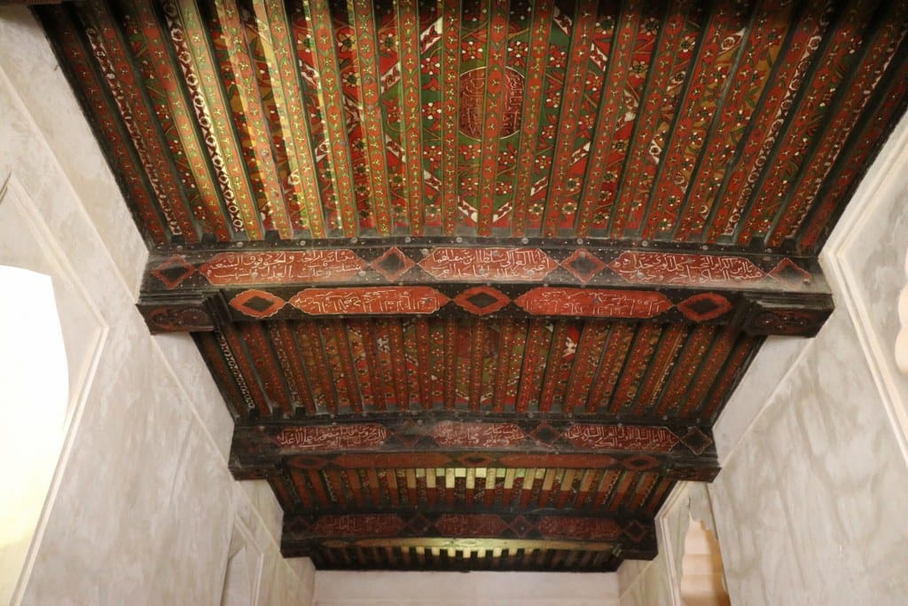 De plafonds zijn van mooie houtsnij- en schilderwerken.