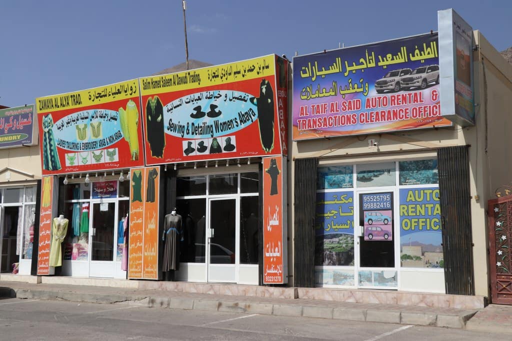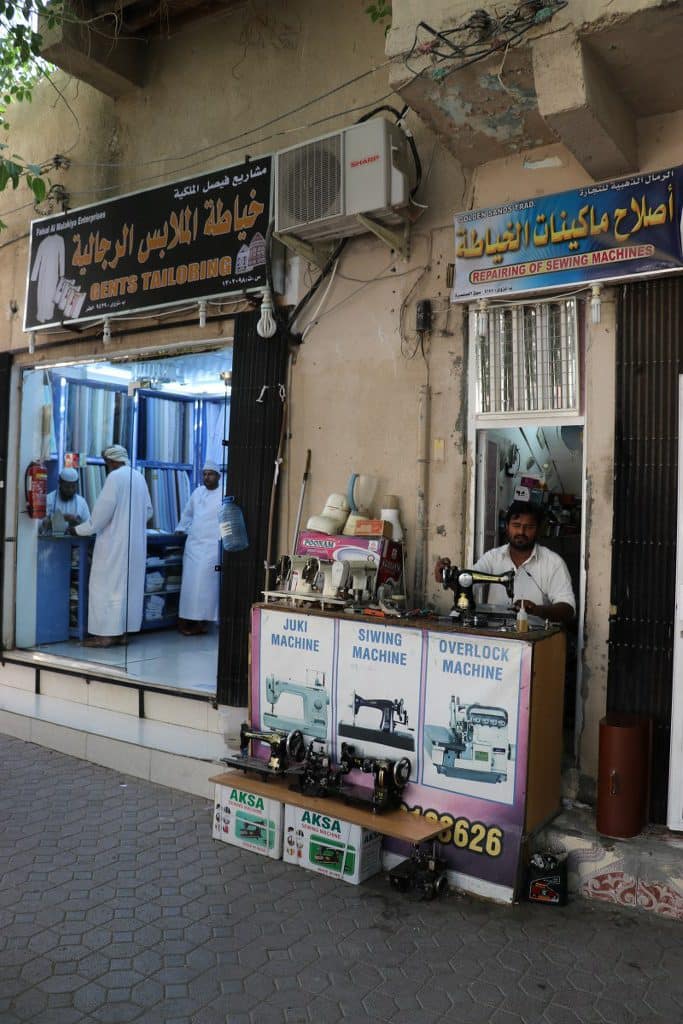 Een bezoekje aan de Nizwa Souq mag zeker niet ontbreken! Je treft een behoorlijke markt aan opgedeeld in verschillende blokken: kruiden, vis, vlees, groente, dadels, potten enz enz. Wat we eerder nog niet gemeld hebben is dat er in Oman geen gedeelde mannen en vrouwen (kleding)winkels zijn, dit is overal strik gescheiden. Hier zien we een “Gents Tailoring” naast de lokale naaimachine reparateur.
