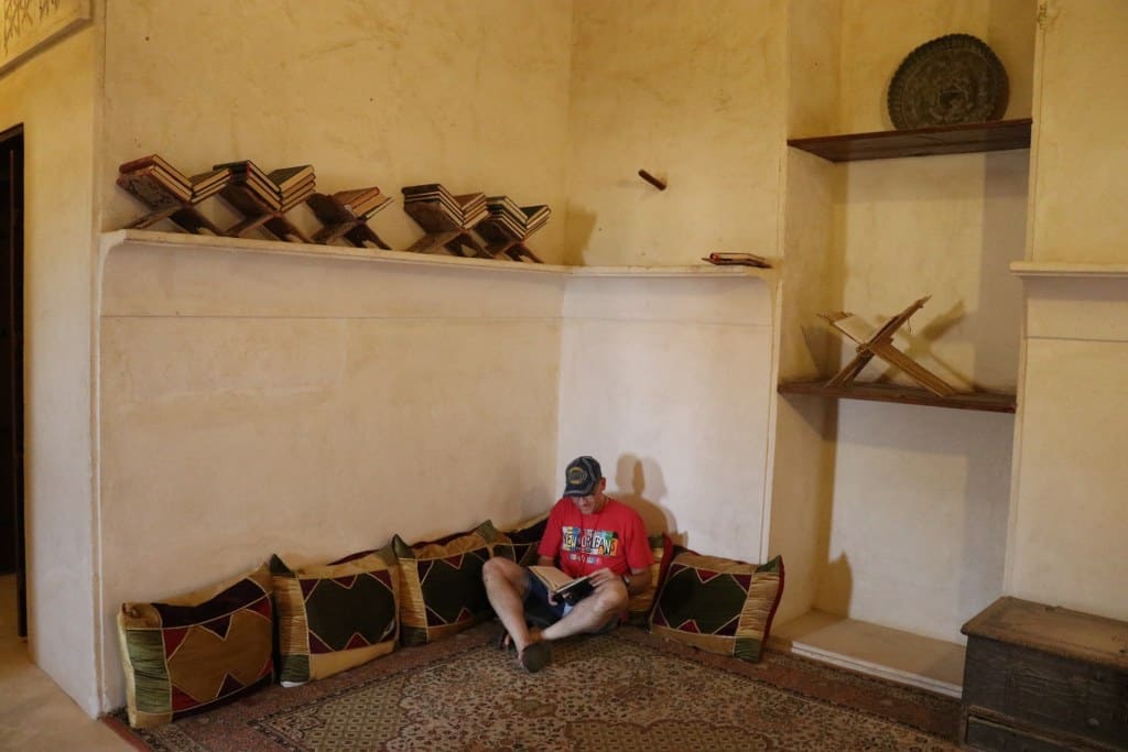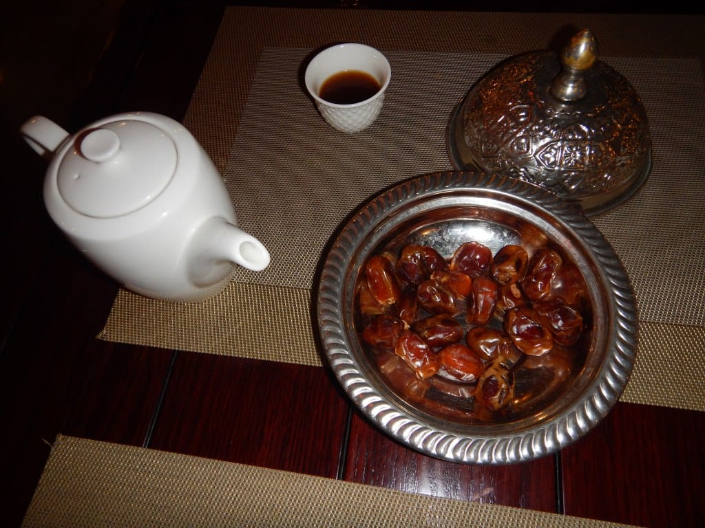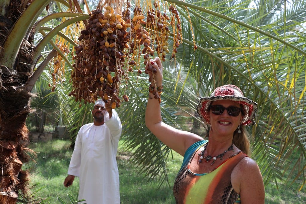 In het Islam visitor center, krijgen we “katoenbomen koffie”, een aparte smaak maar smaakt goed en het reinigt het lichaam. Maar goed, dat hadden we zelf ook al goed gedaan in 2018! Bij deze koffie kregen we dadels want dat hoort er bij in “Dadelland”. Kennelijk erg gezond, veel vitamines en ook hiermee reinig je het lichaam. 2 a 3 dadels in de ochtend geven je voldoende kracht en energie voor de gehele dag. We weten veel meer over het Islam, zoals dat hier in Oman bedreven wordt. Vijf keer per dagen, vijf minuten, bidden en het leven houdt (gelukkig) op deze aarde niet op, er is dus meer……..