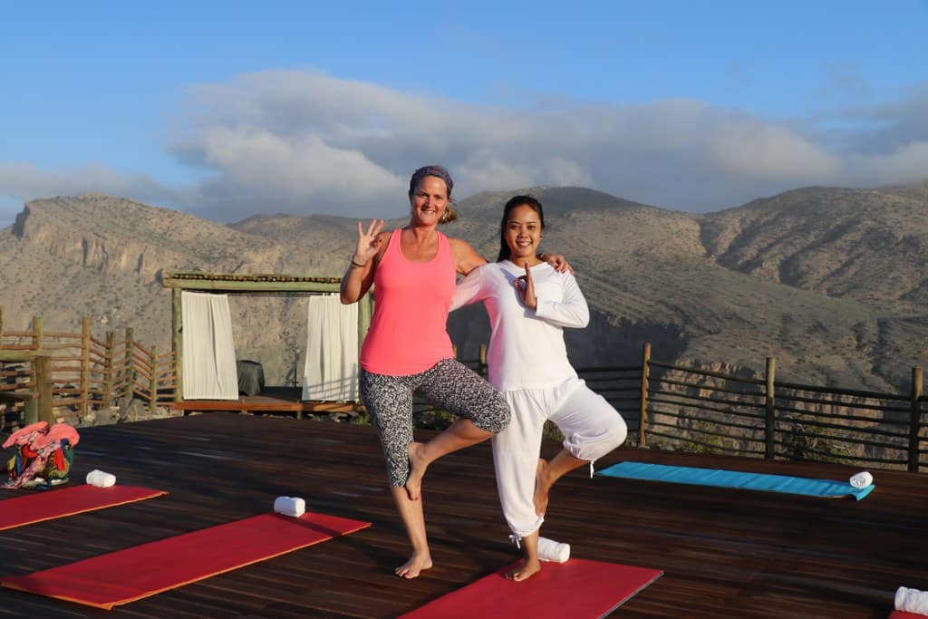 3 november: GOEDEMORGEN Alila Jebel Akdar. Zoals gezegd, fitness en Sunrise Yoga om de dag te beginnen. Weer lekker op tijd het nestje uit dus om ook deze weer actief te starten! Gezond zijn en gezond blijven………