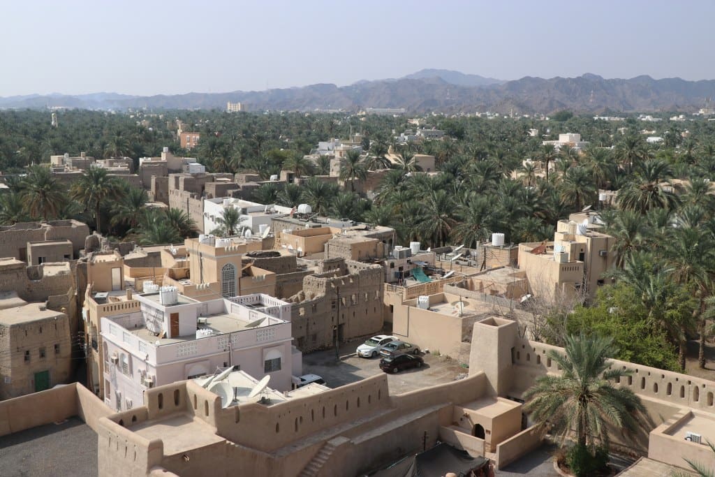 Vanuit de ronde toren wel een gaaf uitzicht over Nizwa.