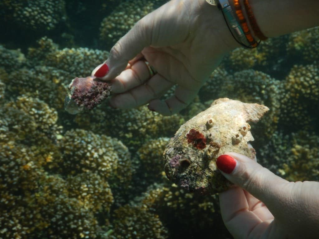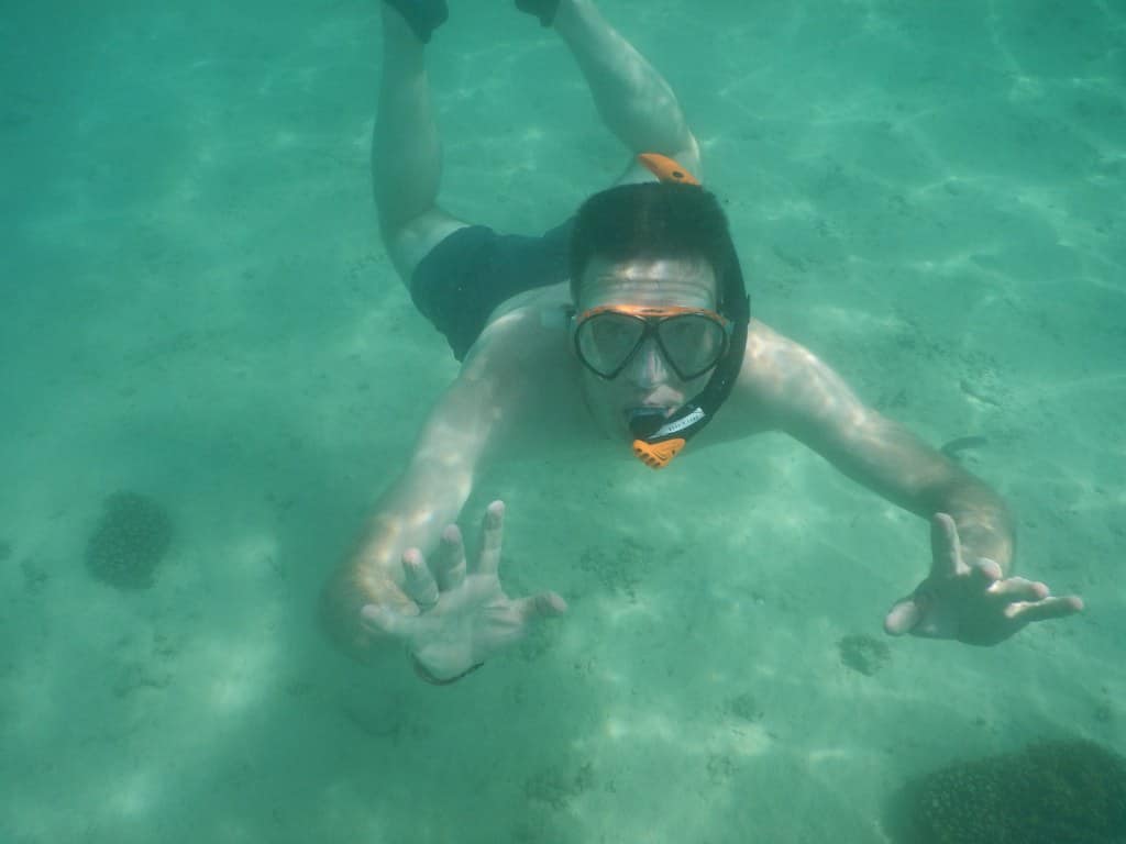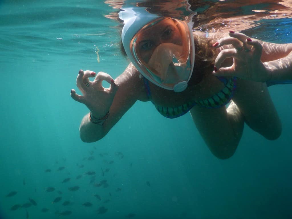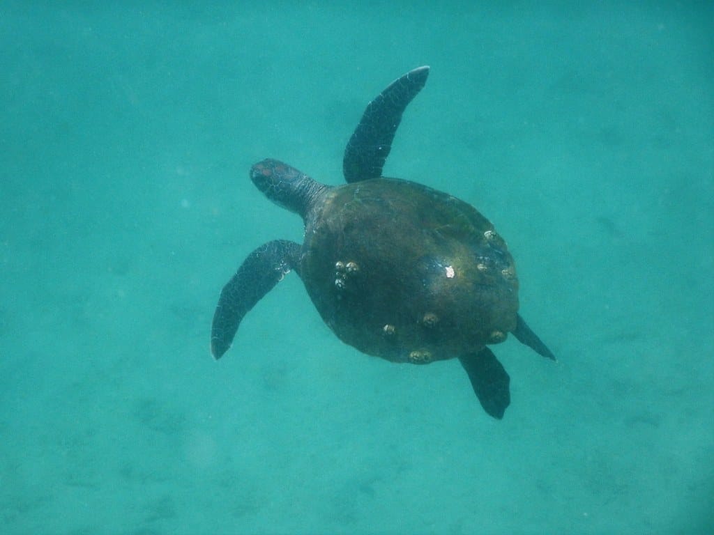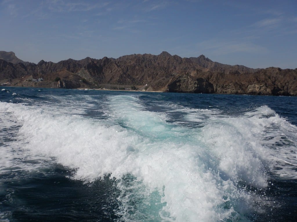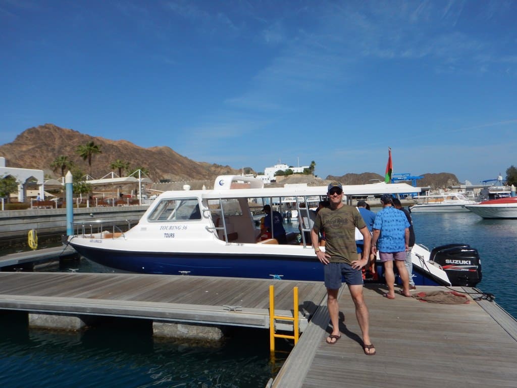4 november: GOEDMORGEN Muscat, op de dag dat ik mijn eerste KISS concert zag! YEAH! IJsselhal te Zwolle was 34 jaar geleden the place to be! Wederom een uitgebreid ontbijt, het laatste Oman ontbijtje. Omstreeks 09.30 uur zijn we uitgecheckt en worden we opgehaald voor onze Dolfin/snorkeltrip. Verzorg door Sidab Sea Tours uit Muscat. Goede organisatie, kun je met gerust hart een zeetour bij boeken! De zee is niet echt rustig dus we schommelen lekker op en neer! Het plan was om eerst dolfijnen te zien maar na ruim een uur rondscheuren op zee hebben we geen dolfijn gevonden. Jammer! Maar goed, dolfijnen hebben we natuurlijk al vaker gezien en zelfs op de Kaaiman eilanden mee gezwommen. Wildlife dus pech! We gaan naar de snorkellocatie. Een prachtig rif waar het wemelt van de vissen, blijft toch altijd bijzonder dat snorkelen. Hier hebben we meer geluk dan met de dolfijnen, we spotten een zeeschildpad die rustig voor ons uit blijft zwemmen. We hadden ze al gezien aan land maar nog niet in open water, geweldige beesten. Deze is nog lang geen volgroeide schildpad maar dat mag de pret niet drukken.
