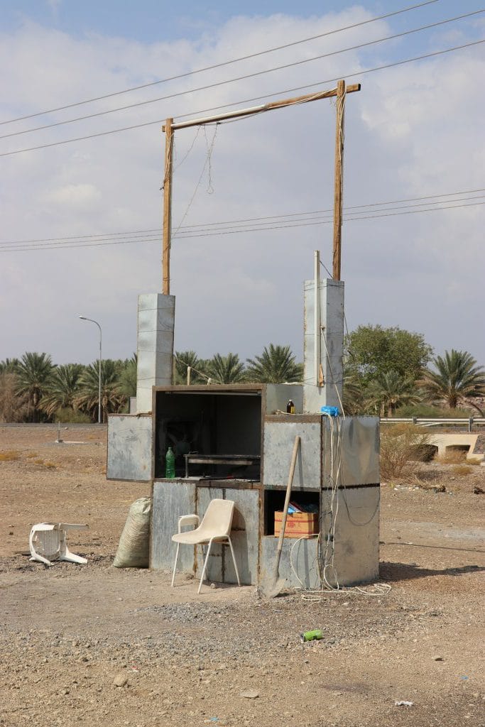 On the road again…… Er wordt veel gewerkt aan het verbeteren en uitbreiden van het wegennet in Oman. Met grote regelmaat is ons navigatiessyteem (afkomstig uit Oman zelf) de weg kwijt. Toch goed dat we het bij hebben want we raden niemand aan om zonder navigatie op pad te gaan in Oman. We zien ook maar weinig mensen een self-drive tour maken de meesten zijn hier met gids of groepsreis. Prima te doen en wij bevelen self-drive dan ook zeker aan voor een land als Oman. BBQ langs de weg, hier zullen ze wel af en toe een feestje vieren……