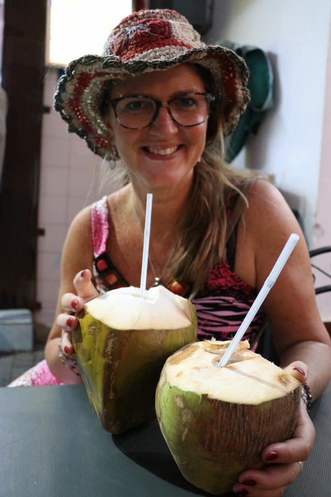 Altijd lekker een koude en verse kokosnoot! Zeker met deze warme temperaturen. Een echte aanrader en iets wat je zonder risico’s kunt drinken.