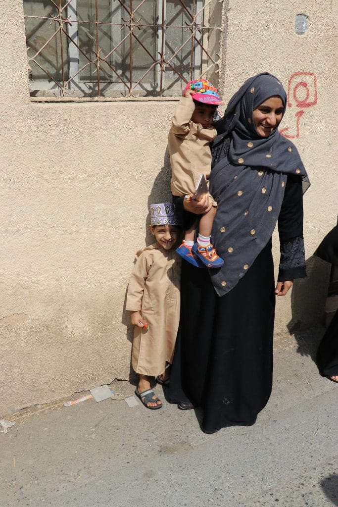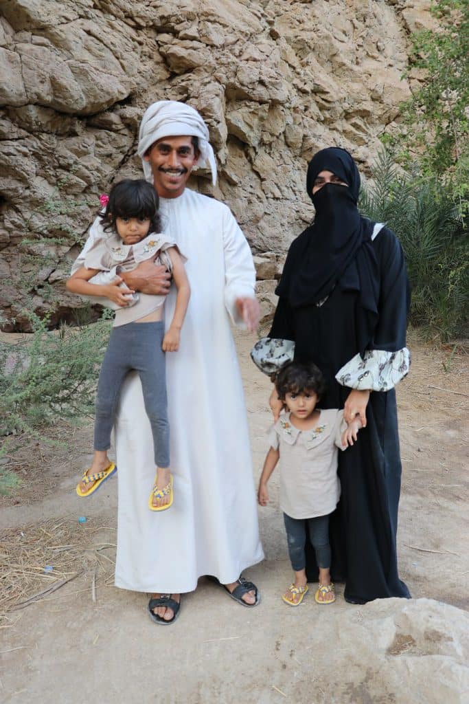 Dit Omans gezin komen we onderweg nog tegen en gelukkig mogen we een foto van hun maken. Deze man verbergt zijn vrouw wel erg goed…….