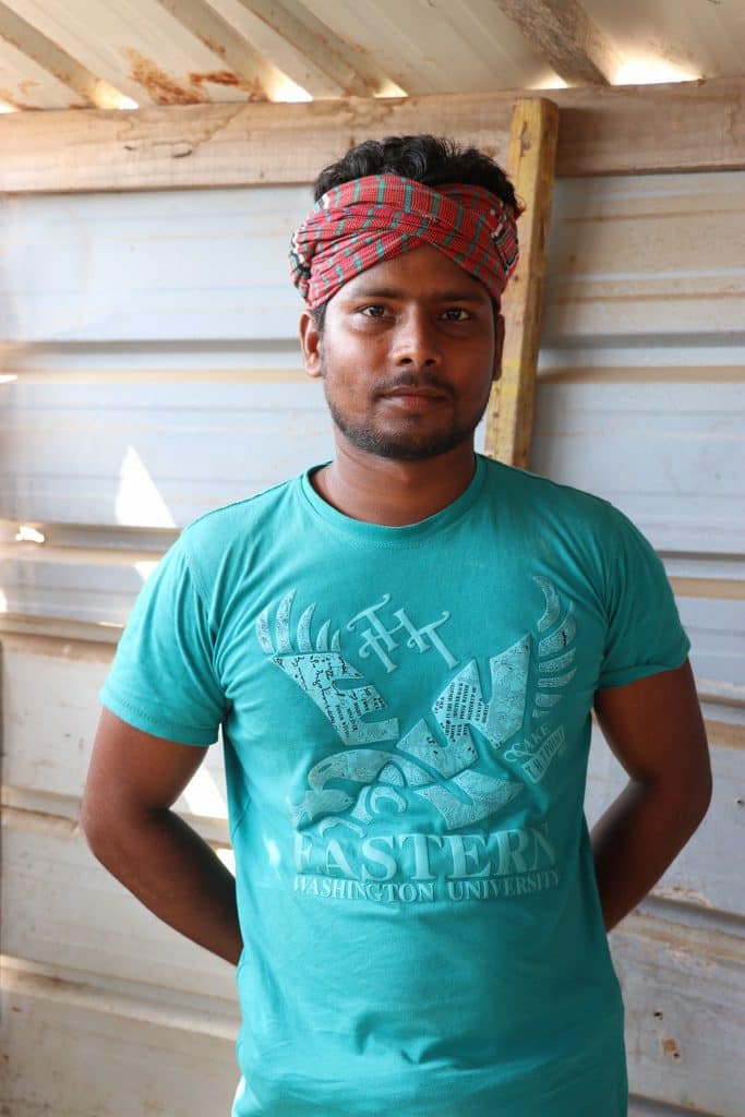 Eerst laten we ons door de locals naar de andere kant van de rivier brengen, 1 Riaal p.p. voor een returnticket.
