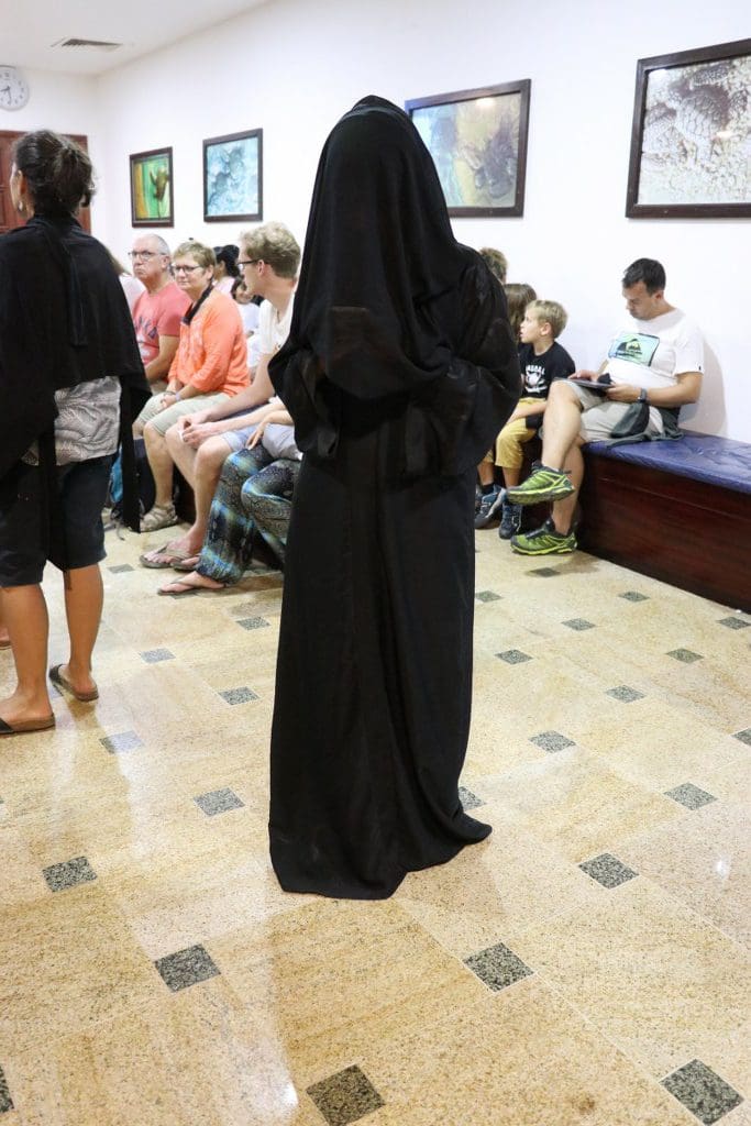 Zoals we eerder vermelden zijn de kledingwinkels voor mannen en vrouwen gescheiden. Hier de women’s shop! Heel veel meer dan gewaden verkopen ze niet!