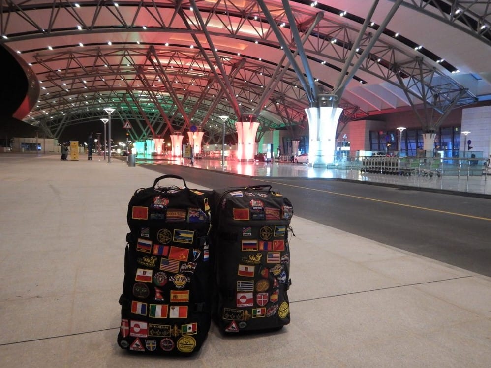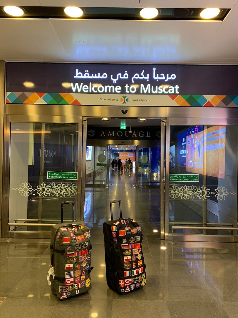 Het mooie Oman geld, soms verkijk je er wel een beetje op want het is meer waard dan onze euro. Ook op de luchthaven alles in rood, groen en wit gekleurde lampen. Onze koffers mogen op deze luxe luchthaven met KLM mee naar Amsterdam.