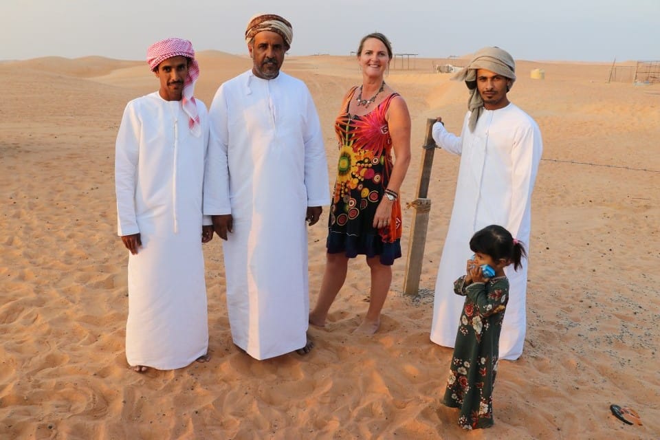28 oktober: GOEDEMORGEN vanuit de woestijn, Wahiba Sands! Heerlijk ochtendje, relaxed en pas rond 08.00 uur ontbijten. Vanaf nu 3 uur tijdverschil met NL, daar is het wintertijd geworden, hier gelukkig ook winter want anders was het in deze woestijn niet uit te houden. Zeer apart om zo wakker te worden midden in de woestijn, in een geitenharen Sheikh tent. We verblijven vandaag de gehele dag in 1000 nights camp, waar we ook deze nacht nogmaals mogen slapen. Erg bijzonder! Zwemmen, midden in de woestijn! Niet te geloven!