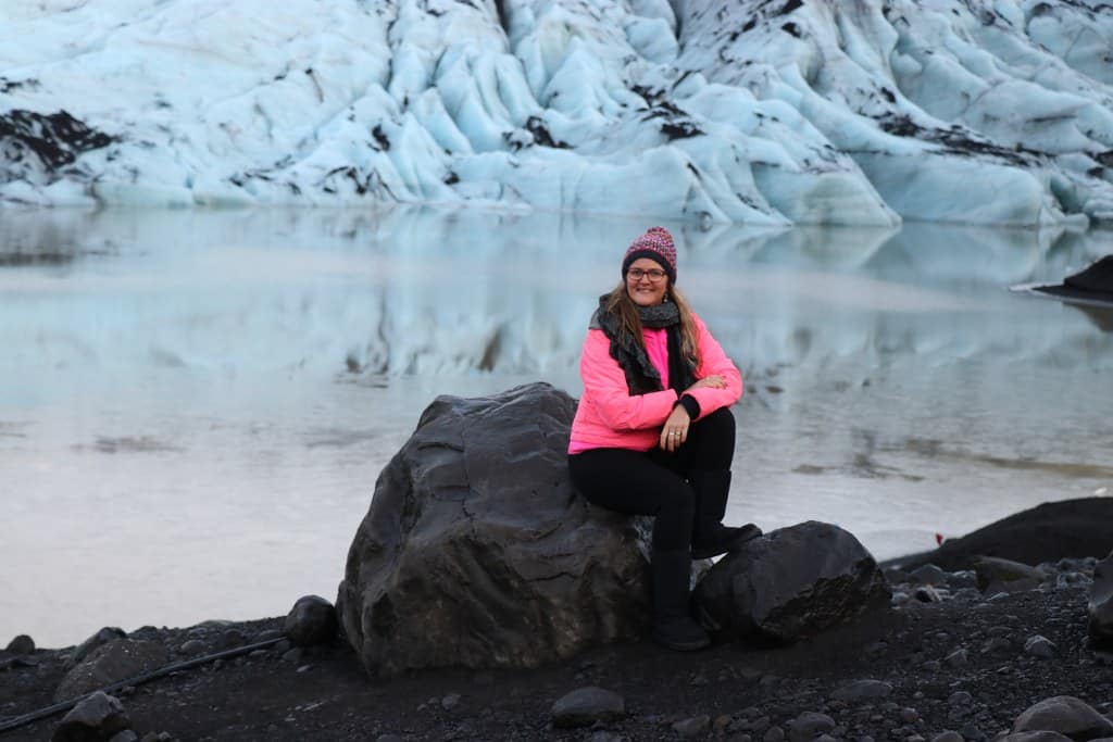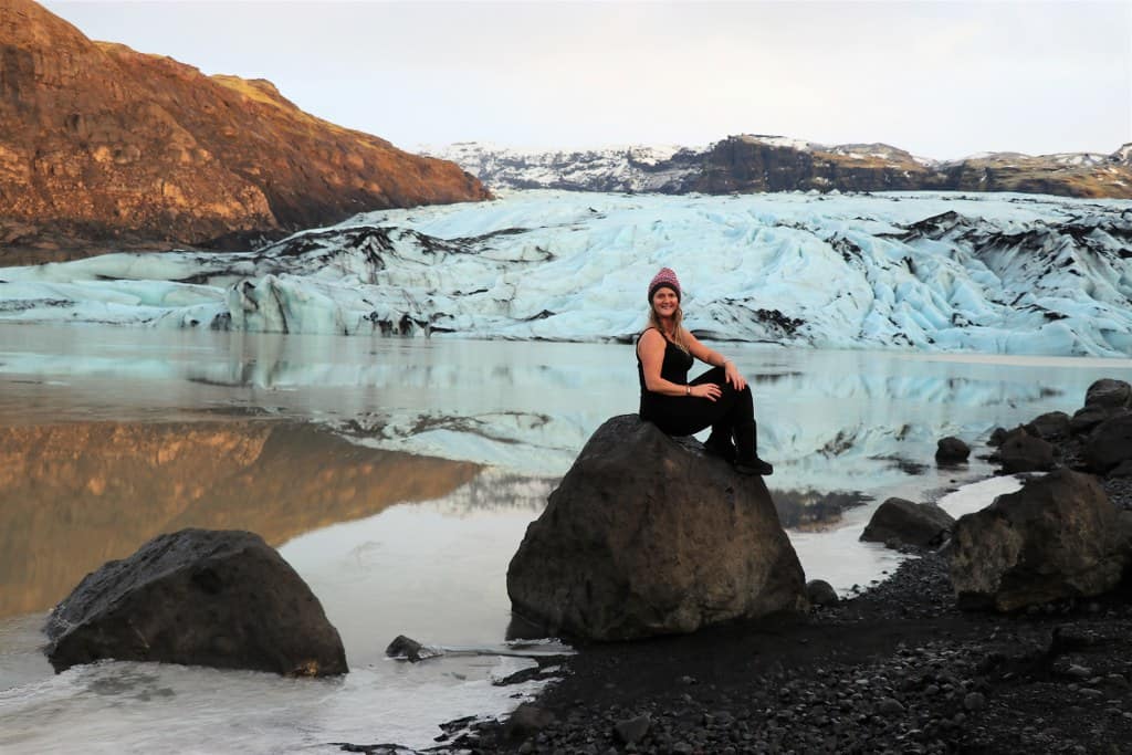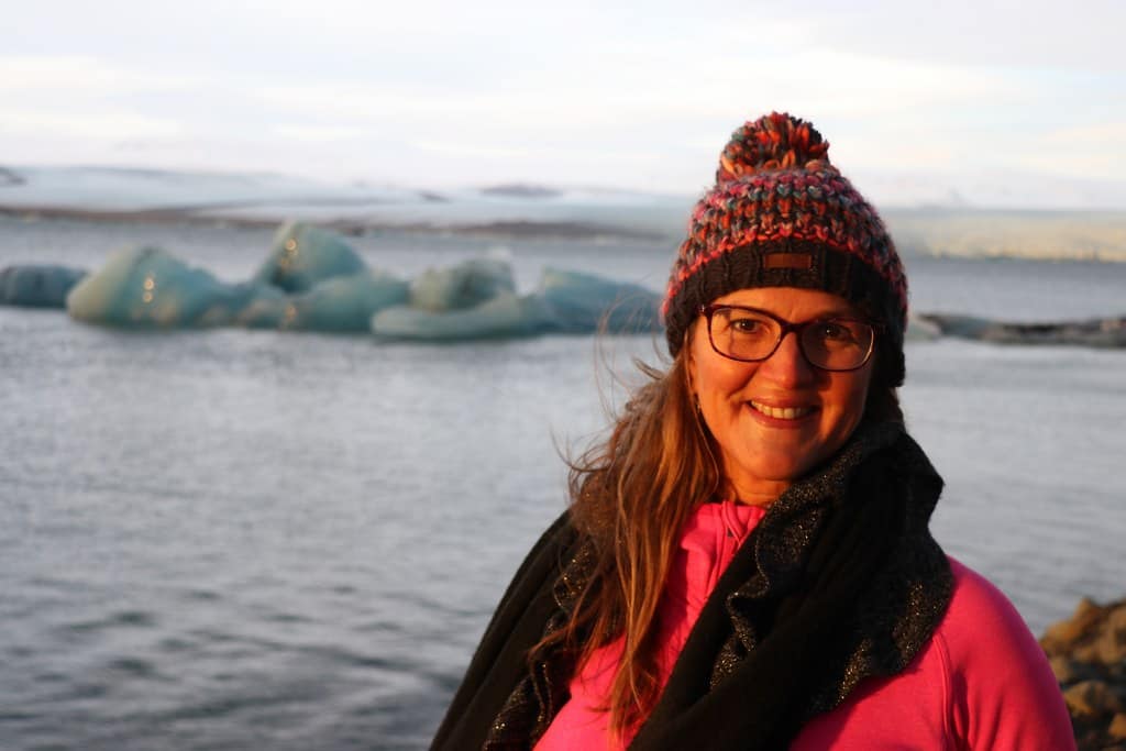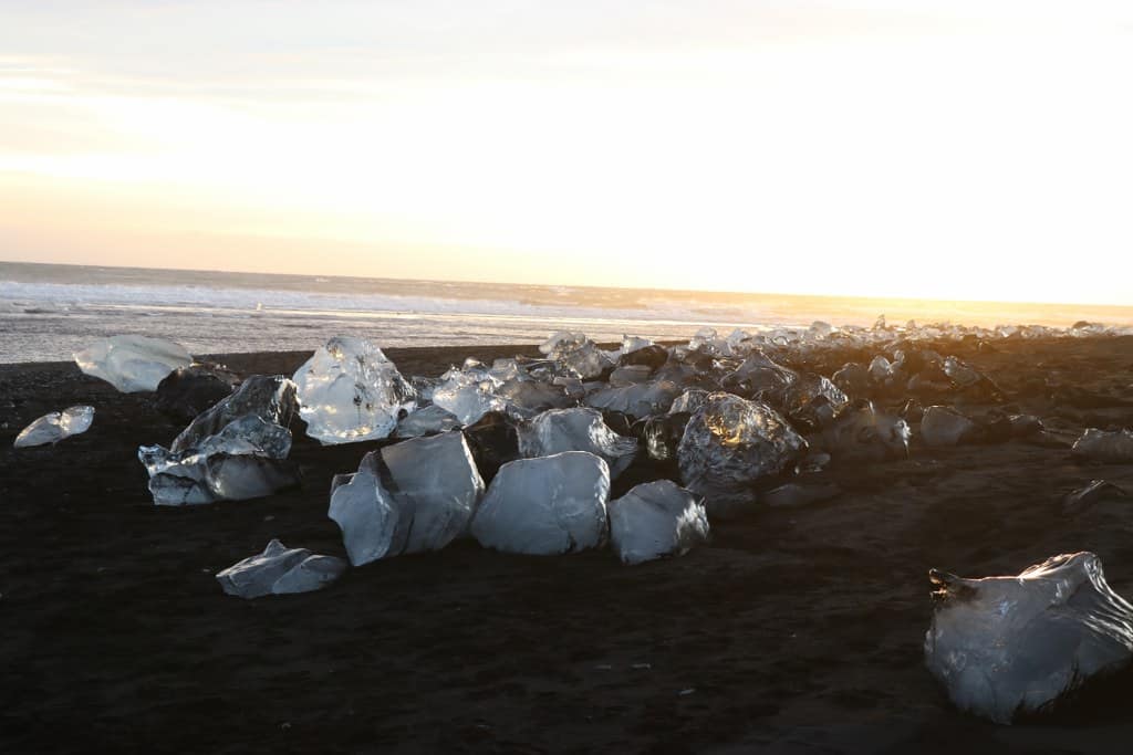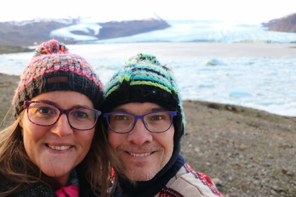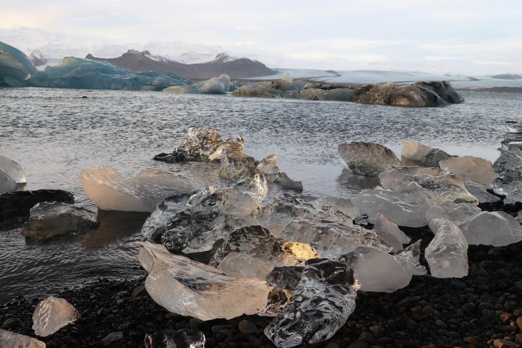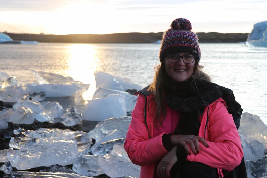 Vanuit de lagoon stromen de ijsbergen- en blokken richting de zee, die daar weer het strand op opspoelen. Erg gaaf en bijzonder! Aangezien Lotte, dit jaar in de van Empel Inspecties en Advisering kerstpakken, een kookschort had gedaan had ik iedereen uitgedaagd om een bijzondere foto te maken met de schort aan. Hier is die van mij! Muts op, tshirtje en hop de ijsblok op! Met onze zomerse kledingstijl hebben we bekijks en staan we op menig camera!