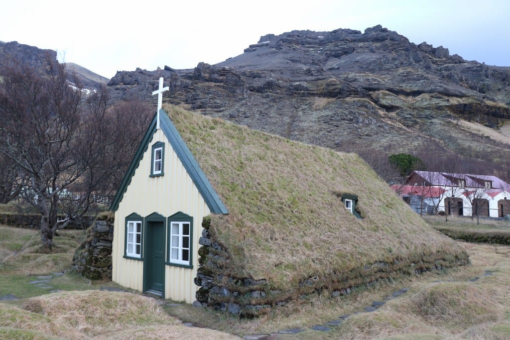 Hofskirkja Turf Church in Hofn. Deze kerk is de laatste kerk die nog overgebleven is van de oude turf kerkjes. Bouwjaar: 1883 – 1885. Een oudje dus. Vandaag niet open maar zeker de moeite waard voor een stop!