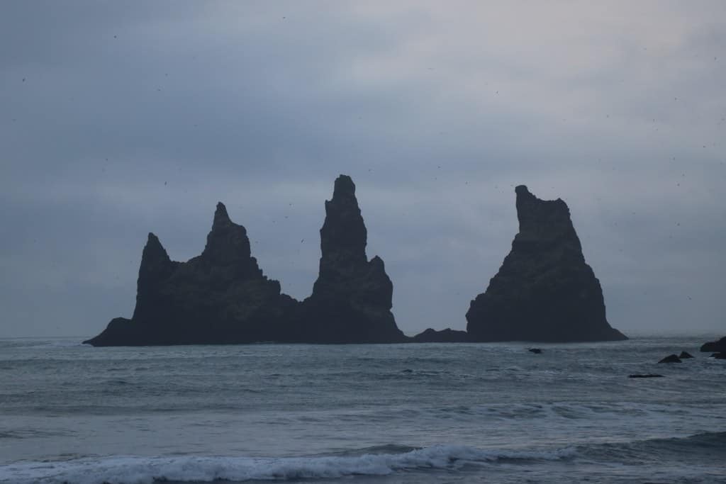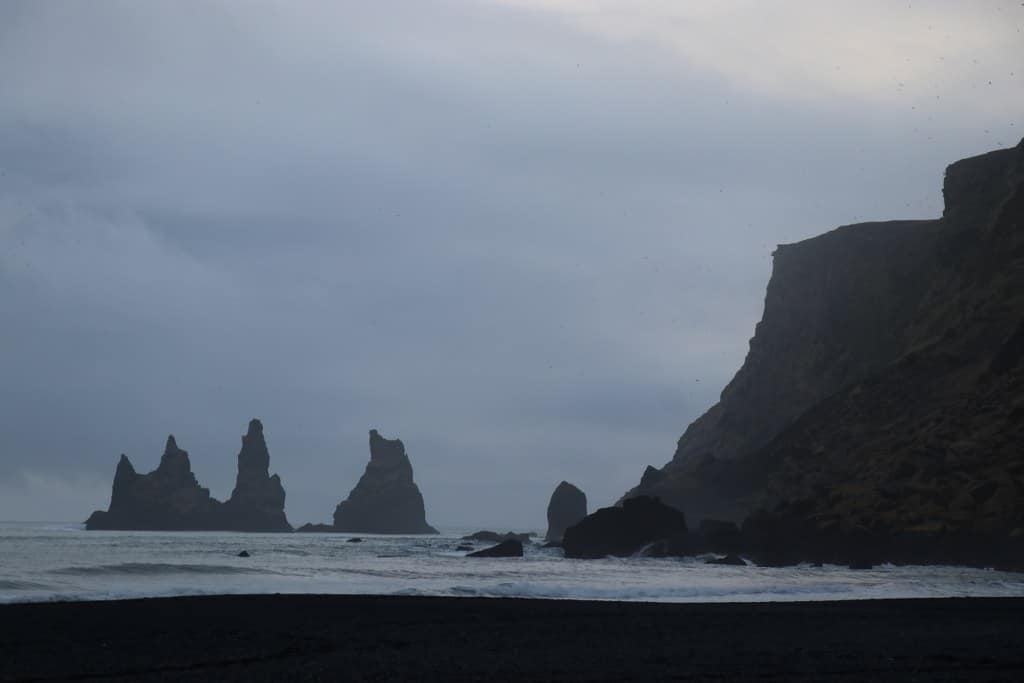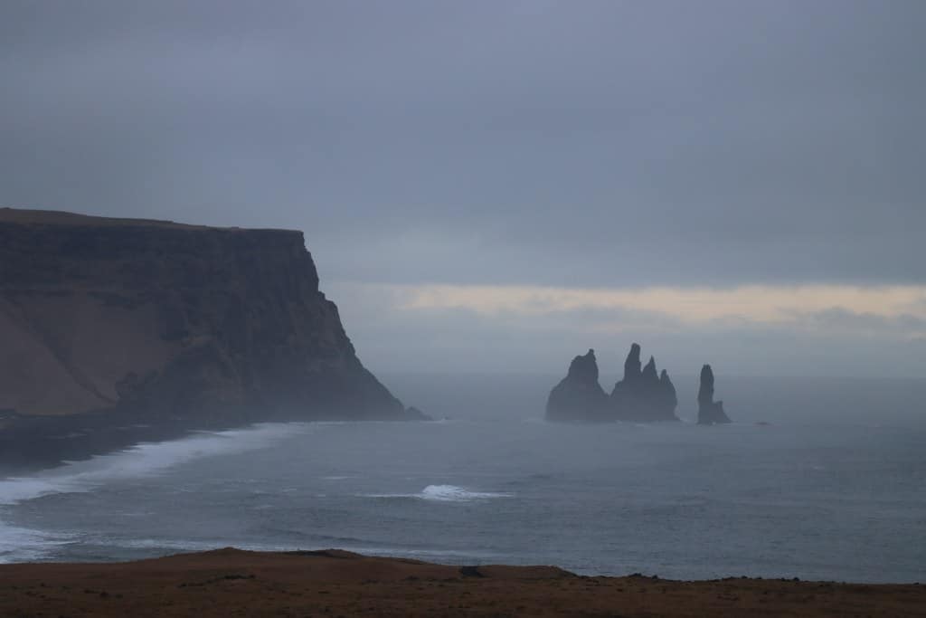 Boven tref je ook de Dyrholaey Lighthouse aan, die in 1927 gebouwd is. Hier boven staat een fris windje, met de koudetraining van zojuist bij de Gletsjer nog in ons lijf is na dit bezoek de autoverwarming weer welkom. Vanuit Vik heb je een goed beeld op Reynisdrangar. Een aantal grote basaltzuilen die hier oprijzen uit de oceaan, deze zijn vanaf het zwarte lavastrand in Vik goed te zien. Volgens de Ijslanders zit er aan deze rotsformaties een verhaal vast. Het zouden de resten zijn van een driemaster die door trollen uit de zee werd getrokken. Toen de trollen door zonlicht werden verrast, versteenden zij gezamenlijk met het schip.