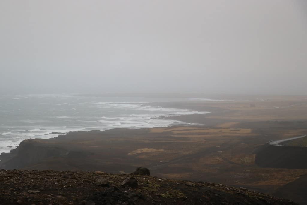 We rijden door naar Grindavik. Prachtige vergezichten worden enigszins belemmerd door het typische IJslandse weer!