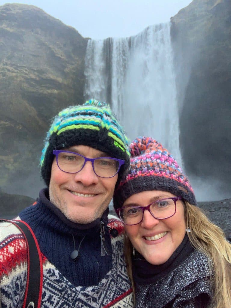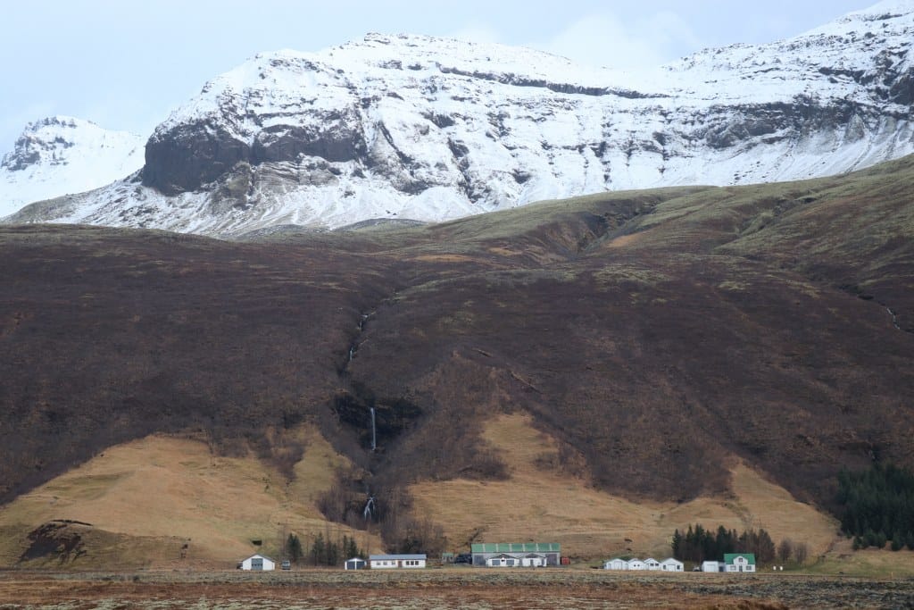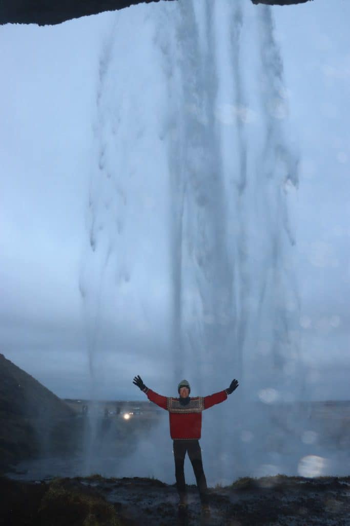 23 december: GOEDEMORGEN Hraunborgir. Vandaag reizen we door naar onze tweede bestemming Horgsland. Niet voordat we ons hot-tube deze ochtend gebruikt hebben als koudetraining, het is buiten -4 graden en de watertemperatuur is inmiddels afgekoeld naar zo’n 0 graden, dun laagje ijs er op! Tijd voor een frisse plons deze ochtend. Daarna ontbijtje, inpakken, ons huisje wat opruimen en poetsen. Op naar de Seljandsfoss, Skogafoss en vele andere gave bezienswaardigheden onderweg. Let’s roadtrip in Iceland…….We vertrekken rond 09.45 uur, nog donker, richting Seljalandsfoss zo’n 85 km rijden. Tegen die tijd dat we daar arriveren is het licht. Via Selfoss de nummer 1 (Ringweg IJsland) weer op. Vandaag verlaten we deze ringweg alleen voor enkele bezienswaardigheden, voor de rest niets. Eerste stop: Seljalandsfoss. Een mooie waterval die je vanaf de ringweg al ziet liggen, althans als je de richting op rijdt zoals wij dat nu doen. Bijzondere aan deze waterval is dat je er achterdoor kunt lopen. Wel even rekening mee houden dat je dan wel nat wordt en dus ook je camera! Met dit koudere weer toch frisjes, ach ja…… gezond!