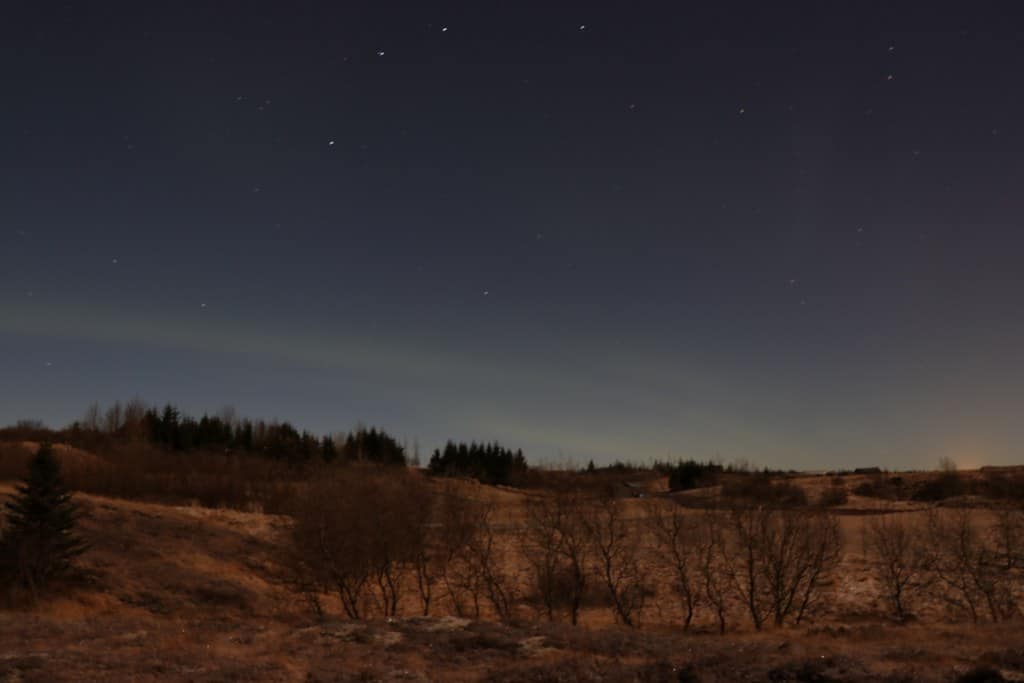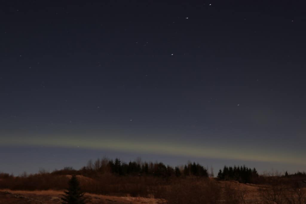 Vanuit Thingvellir is het nog een 45 minuutjes rijden naar ons verblijf in Hraunborgir. We hebben vandaag de gehele dag mee genoten van de laatste show van Evers staat op, Edwin neemt na 18 jaar ochtend show afscheid. In deze 45 minuten kunnen we het laatste deel van de show nog mooi beluisteren, en komen we precies “thuis” na Edwin’s dankwoord. Edwin Evers, ook vanuit IJsland onze dank! Tijd voor een drankje en het vullen van onze hot-tube. Da’s lekker warm met een wijntje/biertje er bij! Heerlijk! Rond 20.00 uur toch echt tijd om wat eten klaar te maken, biefstuk met champignons, hoe klinkt dat? Smakelijk! Rond 22.00 uur zien we een lichte ontwikkeling van het Noorderlicht. Volle maan dus echt te veel licht en daarbij is de KP waarde 2 en dat is te weinig. We houden het in de gaten maar sterker dan dit wordt het niet. Leuk, gaaf maar toch een beetje jammer!