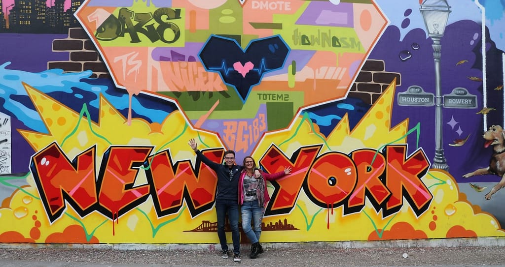 Op de terugweg pikken we nog wat street-art mee, deze kunstwerken tref je nabij Chinatown aan, grenzend aan 3rd avenue. We fietsen dwars door Manhattan terug naar 58th Street, alwaar we onze fietsen huurden. Het is inmiddels spitsuur geworden in New York en op bijna elke kruising treft je New York Police aan, die het verkeer aan het regelen zijn. Wij fietsen van links naar rechts door de automassa heen. Heerlijk avontuur, echter opletten is een must! Wederom genoten van fietsen in New York! Wij zeggen: zeker doen!