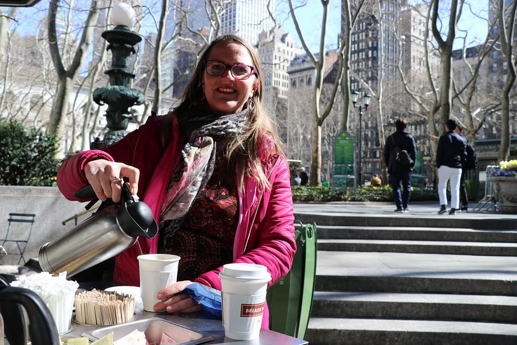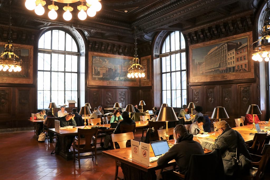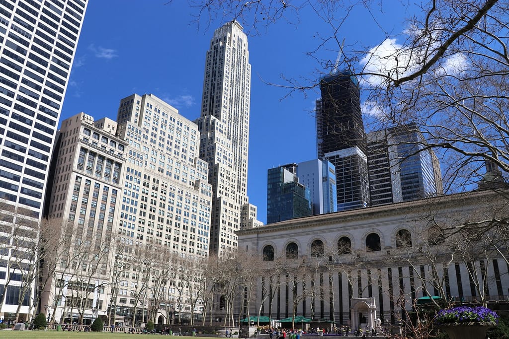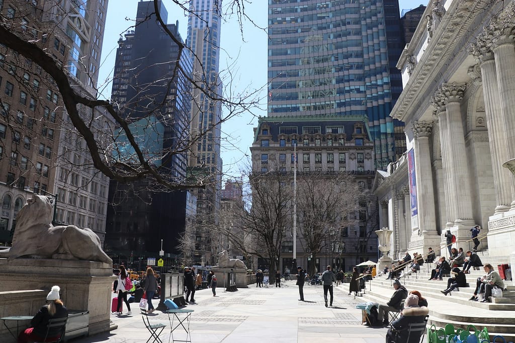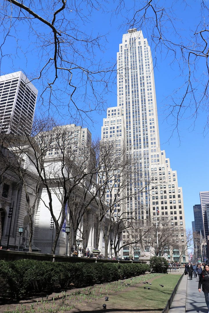 Vanwege het heerlijke weer doen we een break in Bryant Park, waaraan ook The New York Public Library zich bevindt, een prachtig gebouw wat je kosteloos kunt bezoeken. Zeker even doen want de buitenzijde is prachtig en van binnen is het gebouw zeker even mooi. Wel even opletten want de meeste ruimten zijn stilte ruimten! De bibliotheek, die i,n 1895 werd opgericht, heeft 87 verschillende afdelingen. De bekendste afdeling is de hoofdbibliotheek op 5th Avenue, Manhattan. Die is gevestigd in een gebouw ontworpen door architectenbureau Carrère and Hastings en gebouwd tussen 1897 en 1911.