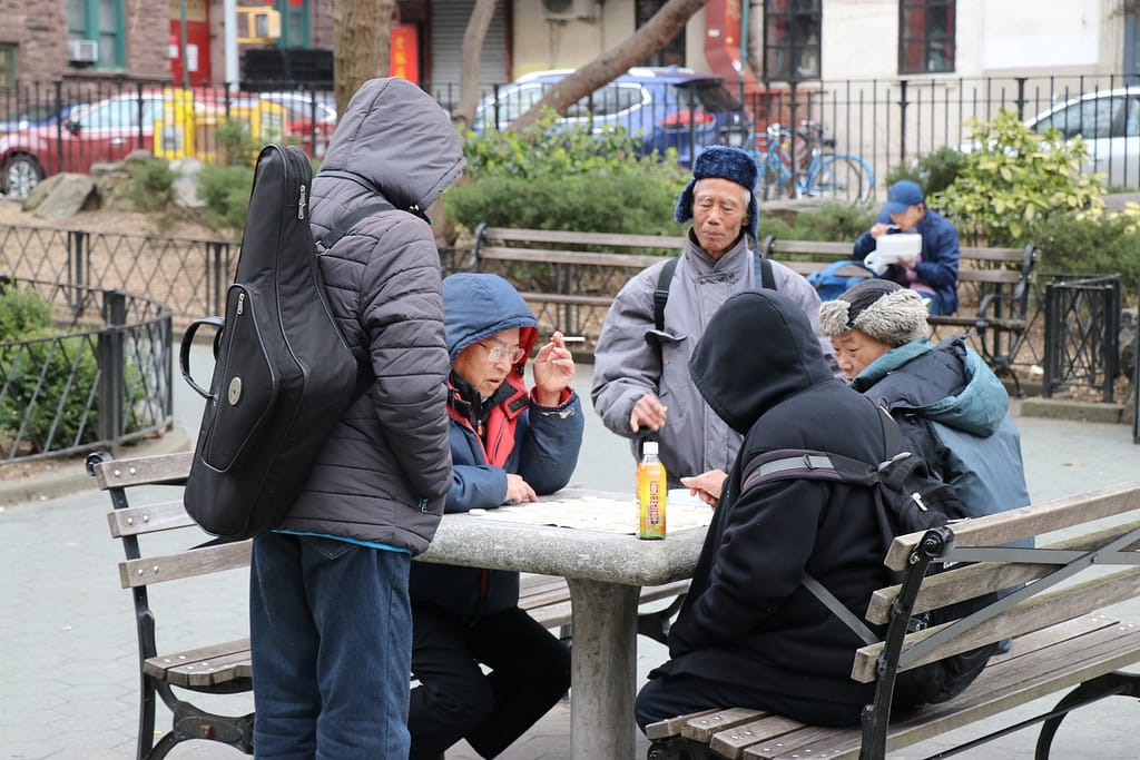 Wij fietsen de brug weer af, zien nog een demonstratie met enkele honderden joden, op naar China Town. Chinatown in New York is een wijk op het eiland Manhattan in New York. Het is een etnische enclave met 300.000 inwoners, waarvan de meesten van Chinese afkomst. Aan het einde van de 19e eeuw bestond de wijk uit nog maar een paar honderd Chinezen, daarna groeide dat aantal sterk. In de 1980’s is haar populatie deze van de bekende Chinese wijk van San Francisco voorbijgestreefd en werd ze de grootste Chinatown van het Westelijk Halfrond. Vandaag de dag is het één van de populairste toeristenattracties in New York. Deze wijk mag je niet overslaan en erg leuk en afwisselend om doorheen te fietsen. Wat te denken van het plein waar de chinezen spelletjes aan het spelen zijn en waar Chinese straatmuzikanten je aandacht trekken. Geweldig! Wij bezoeken met grote regelmaat een Chinatown als we op citytrip zijn, zoals in New York zagen we niet eerder. We voelen ons weer in beetje in Beijing.