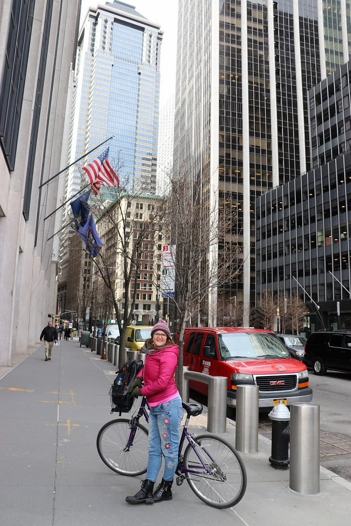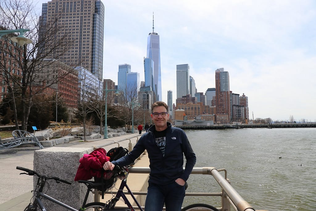Yes, we did it! Running in Central Park, een gave ervaring. Het park is wel glooiend dus je loopt eigenlijk geen meter vlak, continu op en neer. Wat we in 2016 ook deden, maar tegenwoordig in bijna alle stadsbezoeken doen, fietsen huren. Vele steden zijn fantastisch te bezoeken op de fiets en je krijgt daarmee een ander beeld van een stad dan wanneer je alleen te voet of met de metro/bus reist. We doen dus ook tijdens deze trip weer een middagje fietsenhuur. Fietsen huren kan op diverse plaatsen per uur, per dag of zelfs meerdere dagen. In 2016 huurden we bij Central Park Bike Rental, dat doen we in 2019 ook. Prima locatie, goede fietsen en vergeet niet te vragen om de twee goede (fiets)plattegronden die ze beschikbaar hebben. Die van Central Park hebben wij niet nodig want die slaan we met de fiets over, uitgebreid gezien tijdens ons “Central Park hardloop rondje”. Nu is dwars door Manhattan fietsen niet gevaarlijk maar je moet we ontzettend goed opletten, het is er gewoon druk en soms zelfs hectisch druk. Het fietspad langs de Hudson River, loopt helemaal door tot over de Brooklyn Bridge, dat is een prachtige en veilige route om te rijden, zeker bij mooi weer. Je hebt vanaf hier een prachtig uitzicht over Manhattan en over de Hudson. We fietsen via Battery Park, zeker stoppen hier, door naar Wall Street.  Wall Street is een straat in Lower Manhattan, het zuidelijkste gedeelte van het eiland Manhattan, dat het hart van New York vormt. Wall Street wordt vaak gebruikt als synoniem voor de Amerikaanse financiële wereld. Tot hier is alles goed aangelegd en veilig om te fietsen. Nabij 9/11 memorial lunchen we bij Beans & Greens, als je van salade’s houdt daar zeker stoppen! Zelf samenstellen of een van de menukaart, wij eten betaalbaar en overheerlijk!