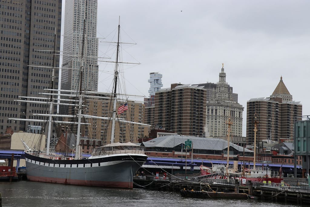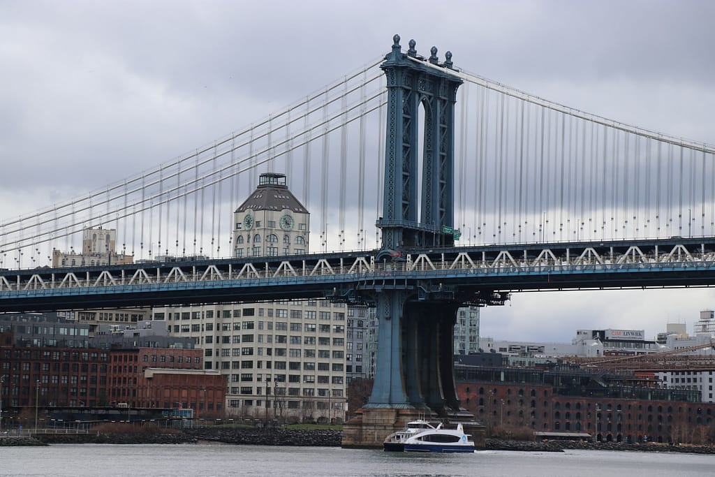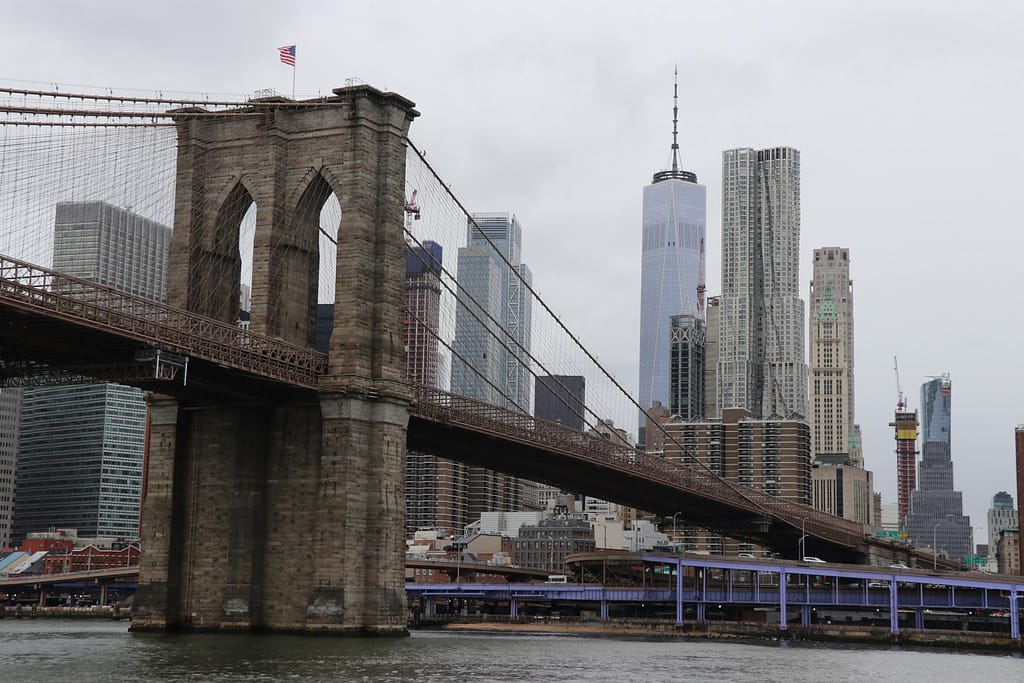 Als je met de metro reist, wat prima te doen is in New York, stap je uit bij South Ferry (lijn 1), vanuit daar kun je op vele manieren het vrijheidsbeeld bekijken. We worden aangesproken voor een Express tour: Brooklyn- en Manhattan Bridge, Skyline, Ellis Island en Statue of Liberty. Klinkt goed en we willen ook niet de gehele middag doorbrengen om dit alles te bekijken. “Laten we dit maar doen”, de prijs is in orde, we betalen en worden met een busje iets voorbij Manhattan Bridge aan de haven afgezet, na een dik half uur mogen we aan boord, gelukkig want het is behoorlijk fris deze dag, het begint te regenen en we willen weg. Althans dat dachten we, Express tour. Wij mogen nog wachten op twee andere bussen om vervolgens ruim een uur later pas uit te varen. Het is ons niet bekend hoe andere organisaties dit doen maar als je met de boot Shyrell Princess gaat via NYC Liberty Express, dan zeggen wij niet doen! De tour is prima maar de wachttijd duidt niet echt op een Express tour! De Manhattan Bridge is een hangbrug die de East River overhangt van Manhattan naar Brooklyn, hetzelfde doet een einde verderop de Brooklyn Bridge, die in 1883 werd gebouwd! Een schitterend fenomeen.