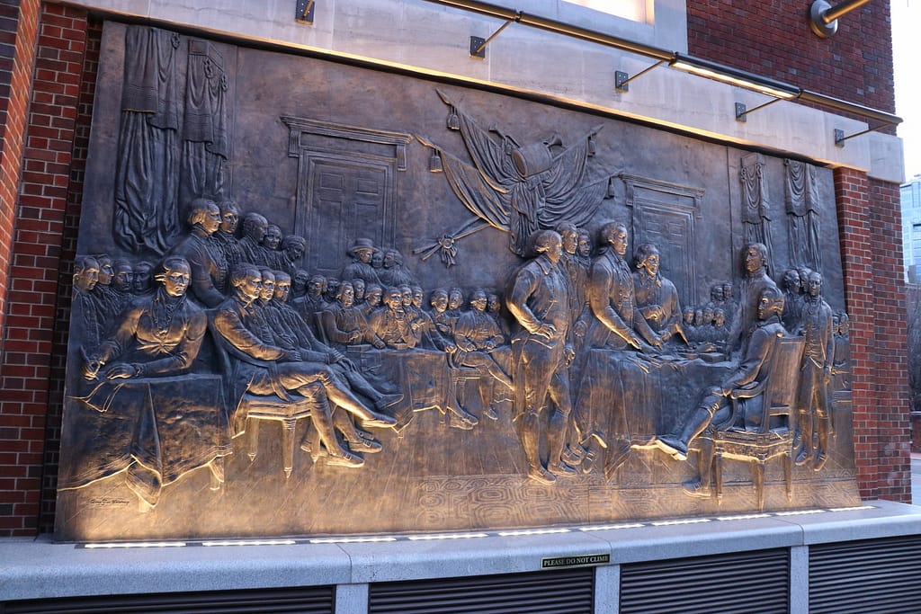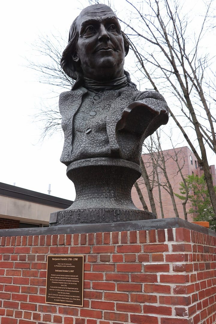 Ontbijt wordt geserveerd tussen 07.30 en 09.30 uur van Ma t/m Vrij, in het weekend van 08.00 t/m 10.00 uur. Uiteindelijk hebben we tijdens deze trip maar een volledige dag gereserveerd om Philadelphia te verkennen. De stad is qua bezienswaardigheden niet zo omvangrijk, als je geen uren in musea gaat doorbrengen, want die zijn er voldoende hier, kun je in een dag een goed beeld van de stad vormen. Metro, fiets of te voet? Wij gaan te voet, we wandelen zo’n 15 km en hebben de stad redelijk kunnen beoordelen. We starten onze tour nabij onze B&B en lopen door de Historic Area van Philly. Veel historie te zien! Het statuut van Benjamin Franklin (1706 – 1790) tref je nabij het Betse Ross House, het 100 ton bronzen beeld is voor zien van 1000 sleutels die zijn aangeleverd door lokale schoolkinderen, erg bijzonder als je het beeld wat van dichterbij bekijkt.