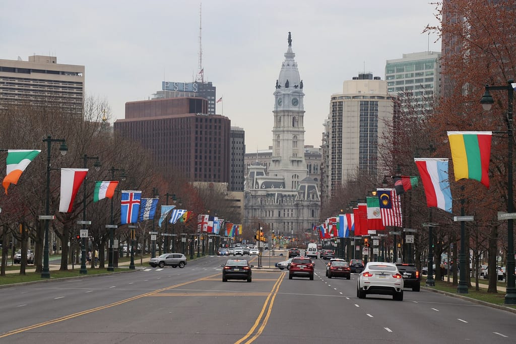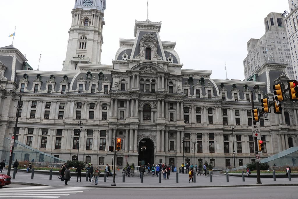 We wandelen via het stadhuis (City Hall) naar de Rocky Steps. Het stadhuis is echt een grandioos groot gebouw, je kunt het niet missen als je in Philly bent. De straat richting het Museum of Art, alwaar de Rocky Steps zich bevinden, hangt vol met wereldvlaggen. Erg leuk en bijzonder, kun je tijdens het wandelen meteen je wereldkennis wat ophalen.