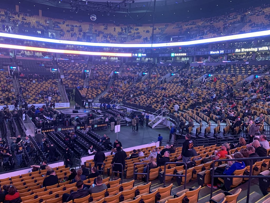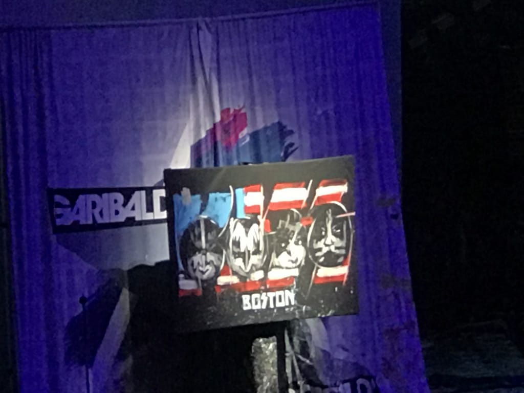 Rond 19.00 uur betreden we de TD Garden in Boston, Loge 11, row 17 seats 5/6, geweldige plaatsen. Capaciteit 19.500 personen en bijna sold-out deze avond! Eerste krijgen we een leuke artshow voorgeschoteld van Garibaldi, een Amerikaanse artiest die muziek en schilderwerken gecombineerd heeft. Geen hoogtepunt maar toch boeiend om te zien hoe snel hij Ozzy en ook KISS op een doek schildert.
