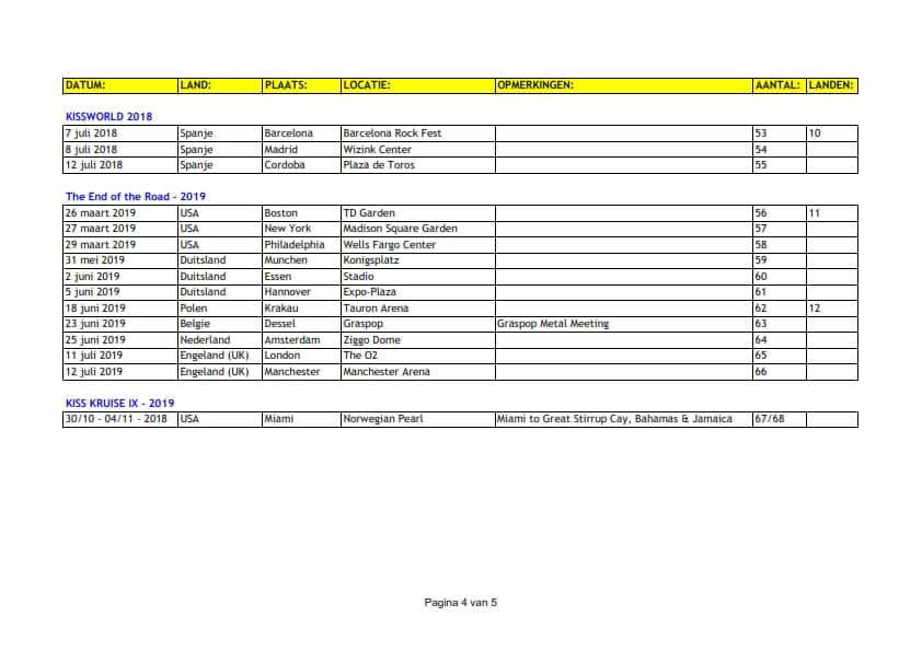 Na deze dag is het even “KISS rust”. Mijn helden worden ouder en een einde ligt in de lijn der verwachting. Richting het einde van 2018 maakt KISS bekend dat er een tijd is aangebroken om te gaan stoppen. The End of the Road tour wordt aangekondigd. Nog geen definitieve einddatum maar de komende twee a drie jaar zullen wel het einde van een bijzonder tijdperk gaan vormen. Ondanks alle gave Kruises (ook 2019 KISS KRUISE IX, is alweer geboekt), heb ik KISS nog nooit echt in de zalen gezien. Daar gaan we de komende weken verandering in aanbrengen. We gaan dus wederom een gaaf en bijzonder hoofdstuk aan mijn persoonlijke KISS-story toevoegen! Boston, New York en Philadelphia we zijn onderweg…….