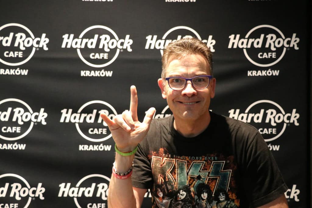 Ook de supportact van KISS, David Garibaldi, wist de weg naar Krakau alweer te vinden. Hij wist onze vorige ontmoeting in Hannover nog te herinneren, dus even een babbeltje en “we are somewhere around in the Tauron Arena at your show”.