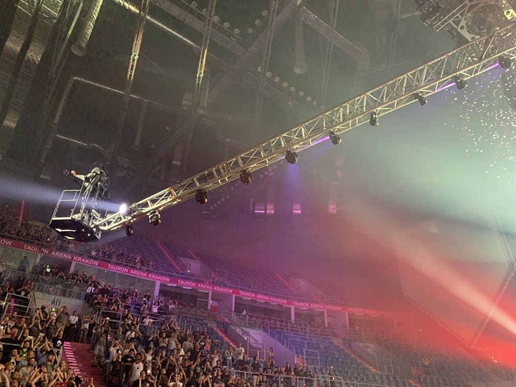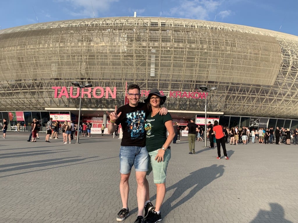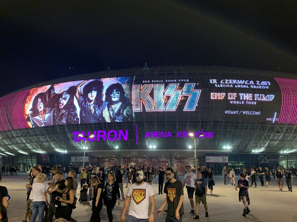 Op 18 juni 2019 is het dan zover op naar de Tauron Arena (voor de eerste keer in deze concertzaal) waar ik mijn 62ste KISS concert ga zien, het zevende van The End of the Road Tour, waarvan we er ook drie bezochten in Boston, New York en Philadelphia! Daarbij zag ik KISS nooit eerder in Polen, waarmee de landenteller op 12 komt te staan. In 12 landen KISS gezien! Bijzonder is dat ik nooit eerder een KISS concert bezocht op de fiets! Een aanrader want je hebt weinig tot niets te maken met de verkeersdrukte op zowel de heen- alsook de terugweg. Daarbij mag je naderhand lekker uitwaaien na een avondje staan, wij hadden staanplaatsen. Zitplaatsen zijn er ook voldoende, met een capaciteit van 22.000 is de Tauron Arena een behoorlijke tent. Niet geheel gevuld deze “KISS avond” maar met 90% toch goed vol. Natuurlijk kom je ook altijd bekenden tegen, oftewel andere leden van de KISS Army, ditmaal wederom Alexander en Niclas uit Zweden, die wijn werkelijk overal!