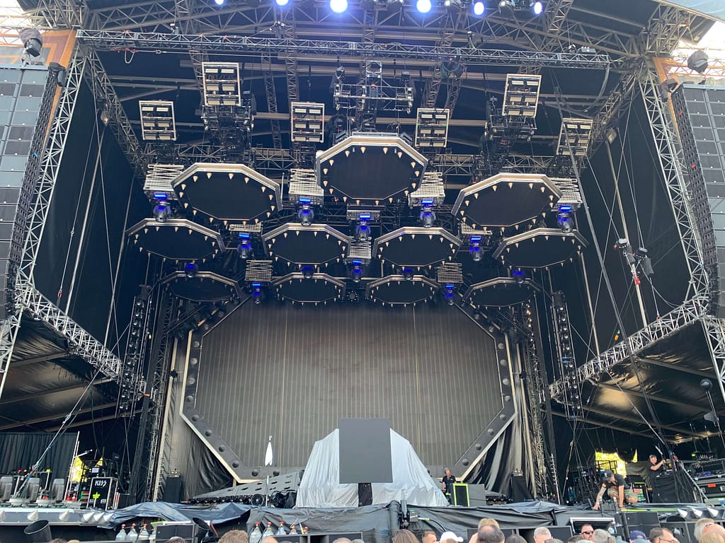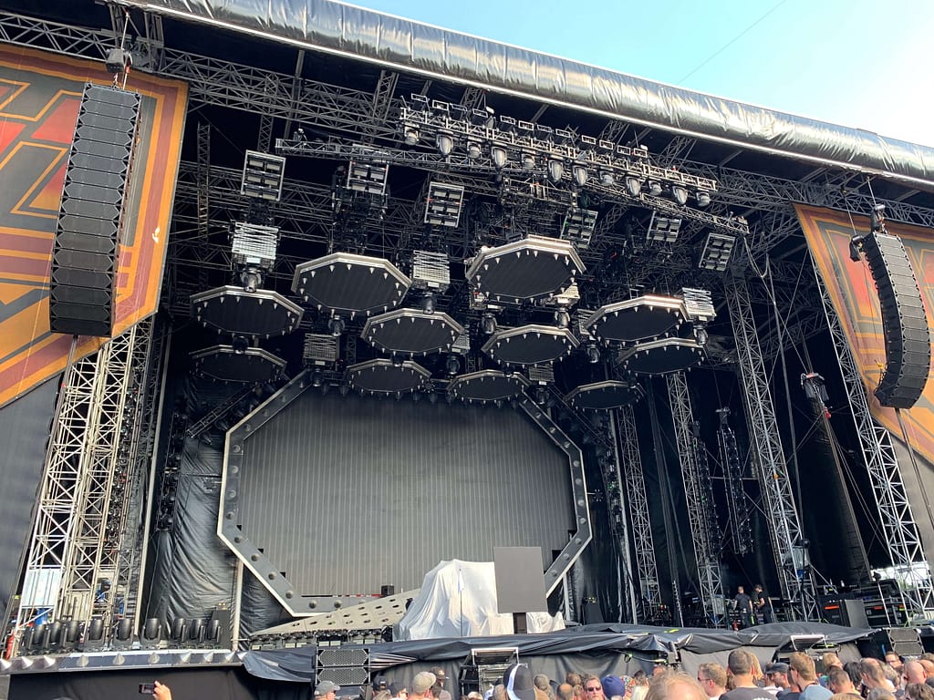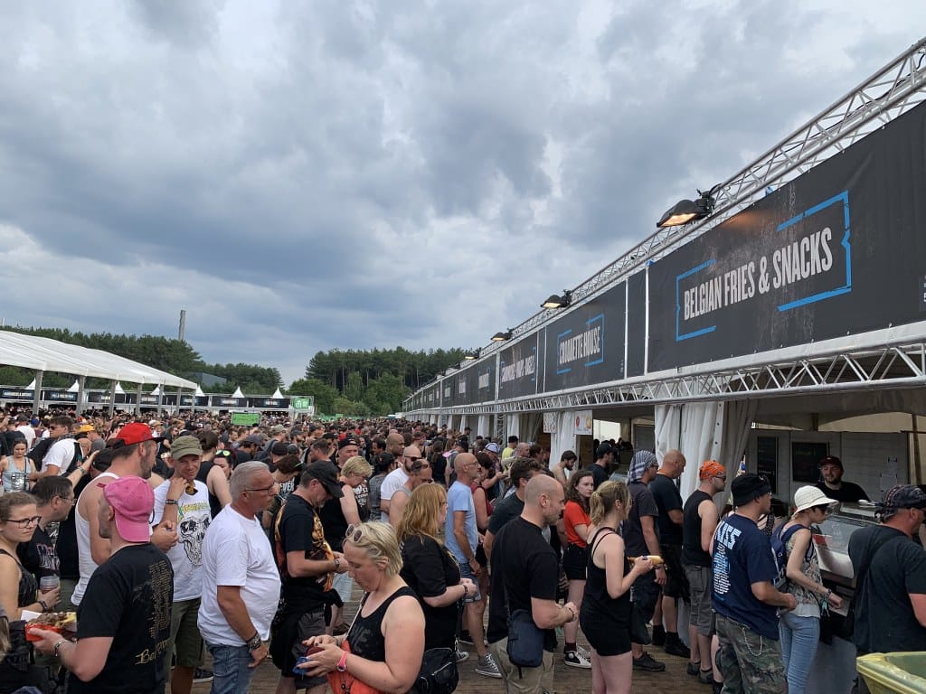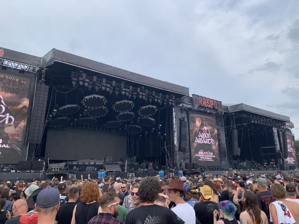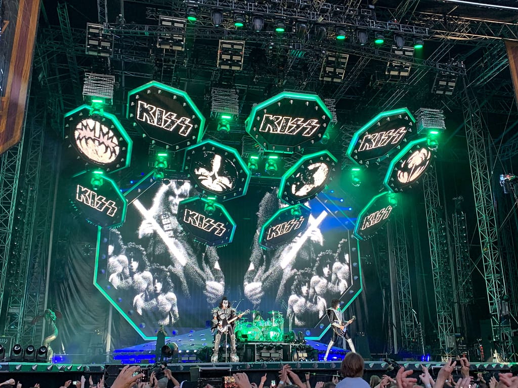 Het is druk op Graspop, voor het tweede jaar volledig uitverkocht! Graspop is TOP georganiseerd, moet ook wel met zo’n hoeveelheden aan mensen. Wat direct opvalt is de mega grote screens die langs het podium hangen, ook aan de achterzijde van de mengtafel is een groot scherm aanwezig! Hiermee is ieder detail op het podium zichtbaar voor de gehele festivalweide. Feit is wel dat je niet “zomaar” iedereen die je kent ook ziet met deze druktes, je moet echt specifiek afspreken! Ik heb Graspop, tot drie jaar terug, trouw jaarlijks bezocht maar weet nu ook weer waarom ik toen afscheid genomen heb van dit mega-spektakel. Muziek en concerten vind ik leuk en bijzonder, echter met deze “grootsheid” gaat de gezelligheid en de sfeer wel wat onderuit. Zo bezocht ik de afgelopen jaren ook vele andere concerten en wat kleinere festivals, eerlijk is dan eerlijk, daar gaat mijn voorkeur meer naar toe. Genoeg gemauwd, want we zijn gewoon op Graspop en KISS speelt hier vanavond in het kader van hun End of the Road Tour, dus zijn we enigszins verplicht om naar Graspop te gaan, ligt immers bijna in de achtertuin.