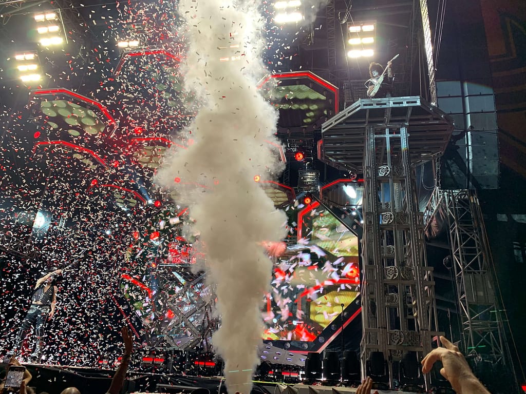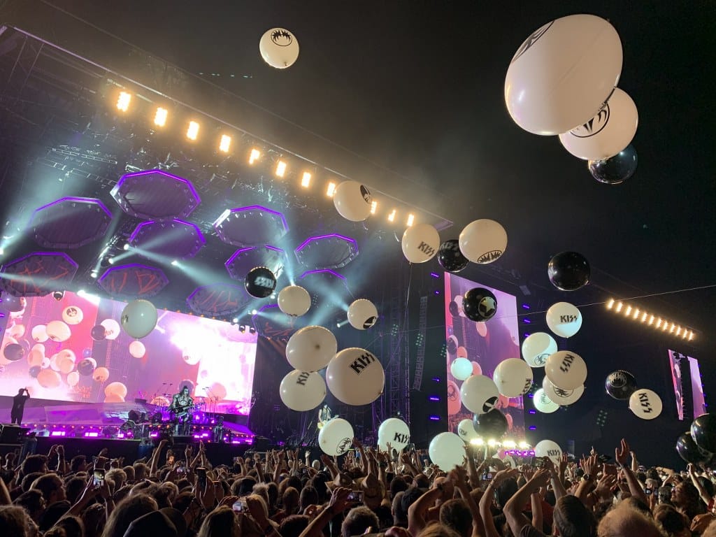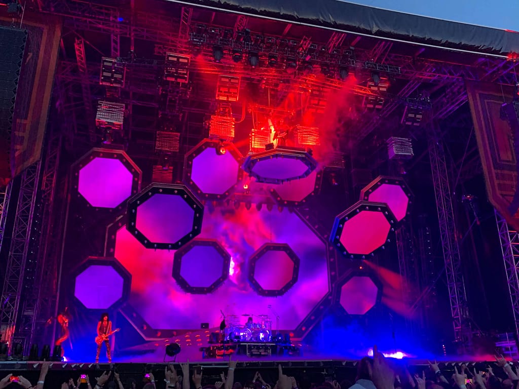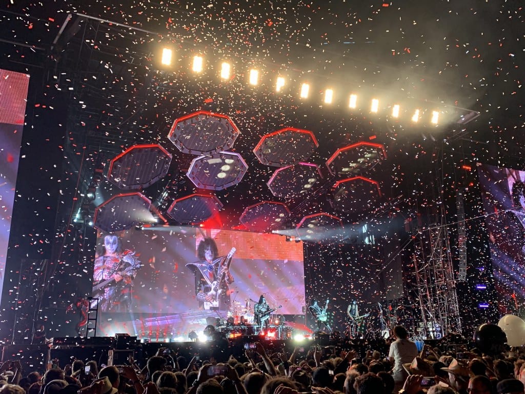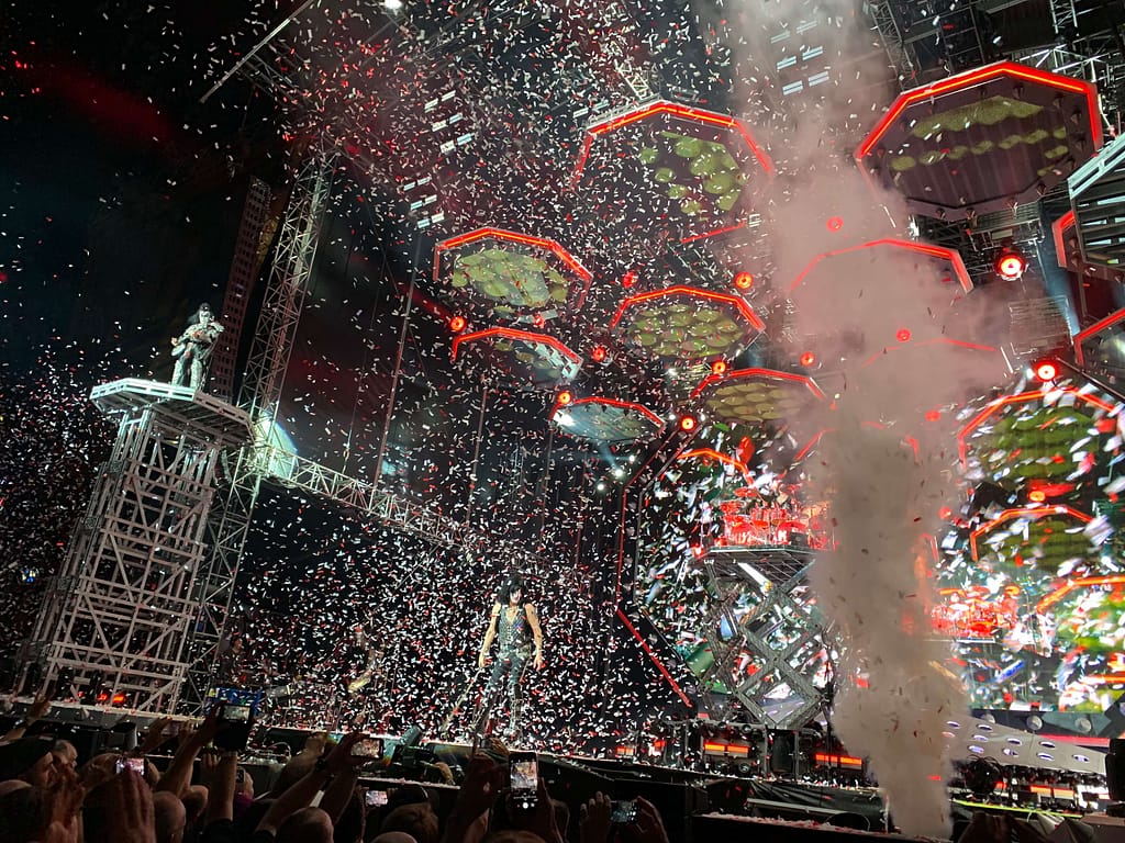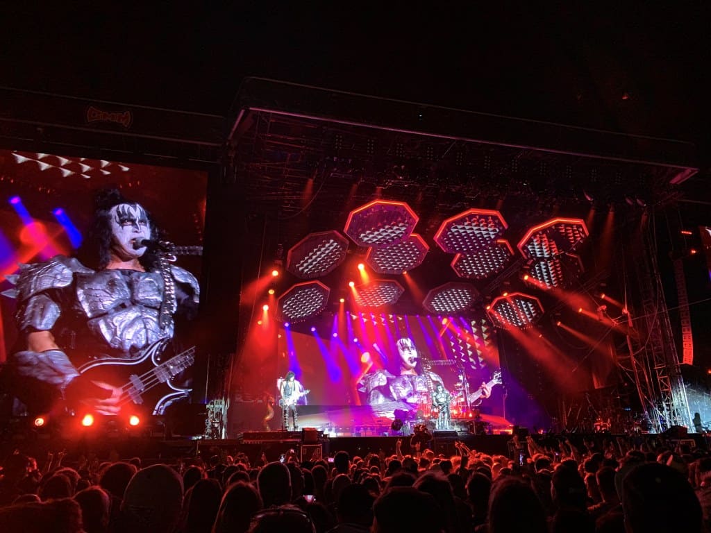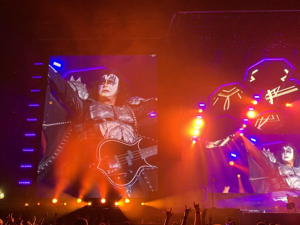 Nog even een hapje en drankje en op naar een nieuw KISS avontuur. KISS trapt rond 23.00 uur af, Allright Graspop……. BAM we zijn weer onderweg met Detroit Rock City! KISS speelt voor een festival optreden echt heel goed! Het grote screen achter Eric Singer, is niet het KISS screen van deze tour, enige vorm van concessies is kennelijk noodzakelijk op festivals!? Daarbij missen we in de lichtshow en op wat andere punten nog enkele showeffecten. Wel zien we een aantal gigantische vlammenwerpers extra voor het podium, die zijn mega-vet! KISS is in TOP-vorm en Gene heeft het, ondanks de hitte, goed naar zijn zin.