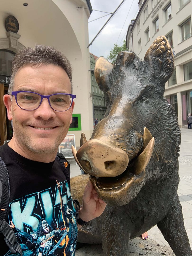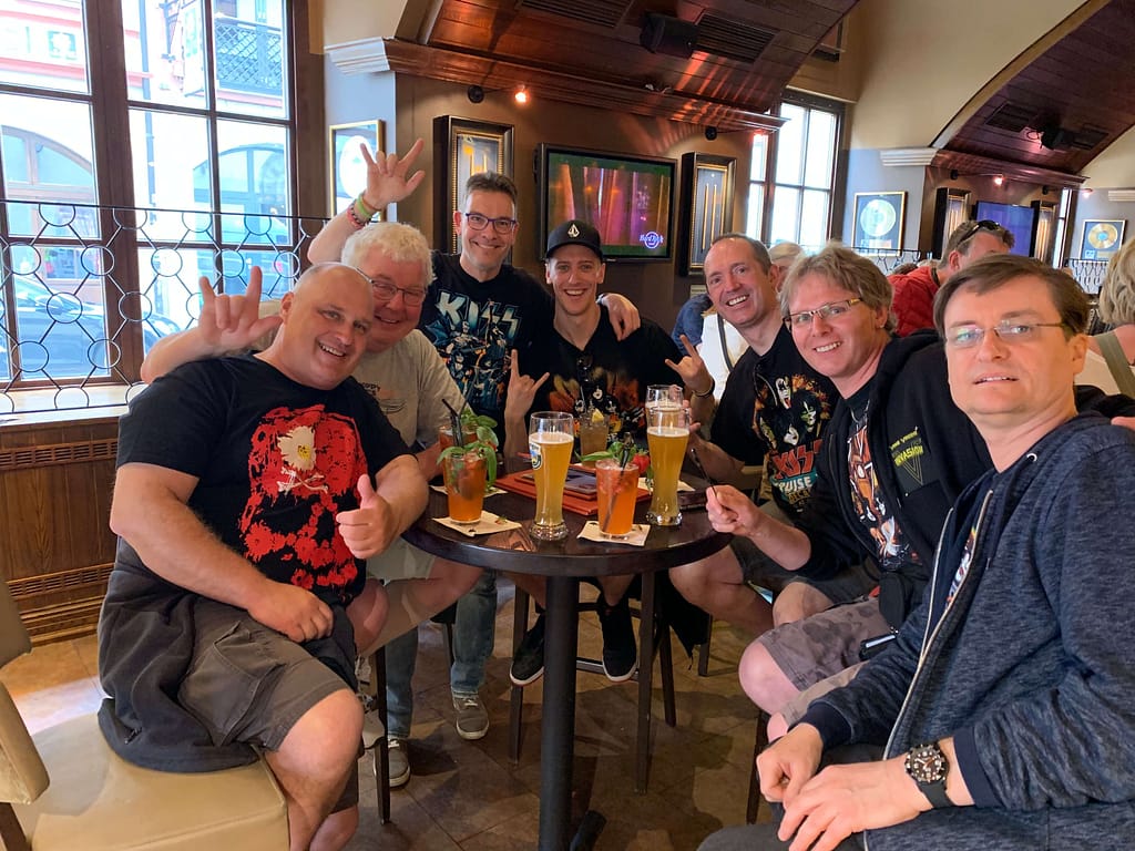 Een bezoekje aan het Hard Rock Cafe Munich mag natuurlijk niet ontbreken, ook hier in 2017 al geweest maar altijd goed om nog wat andere KISS liefhebbers te treffen. Zeg maar een soort van ontmoetingsplaats voor liefhebbers! Bij binnenkomst otmoet ik al snel de groep met Belgische liefhebbers en ook KISS Army Spain is vertegenwoordigd in München. Ook dat zijn sinds ons bezoek aan Spanje in 2018 geen onbekenden! Een gezellige middag met vele gave verhalen volgt…. Zoals al vaker gezegd, KISS is niet alleen een orkestje wat muziek maakt, KISS connects people around the world. Door KISS heb ik al vele landen, steden, hotels, concertzalen e.d. bezocht! Daarvoor ben ik de heren dankbaar!
