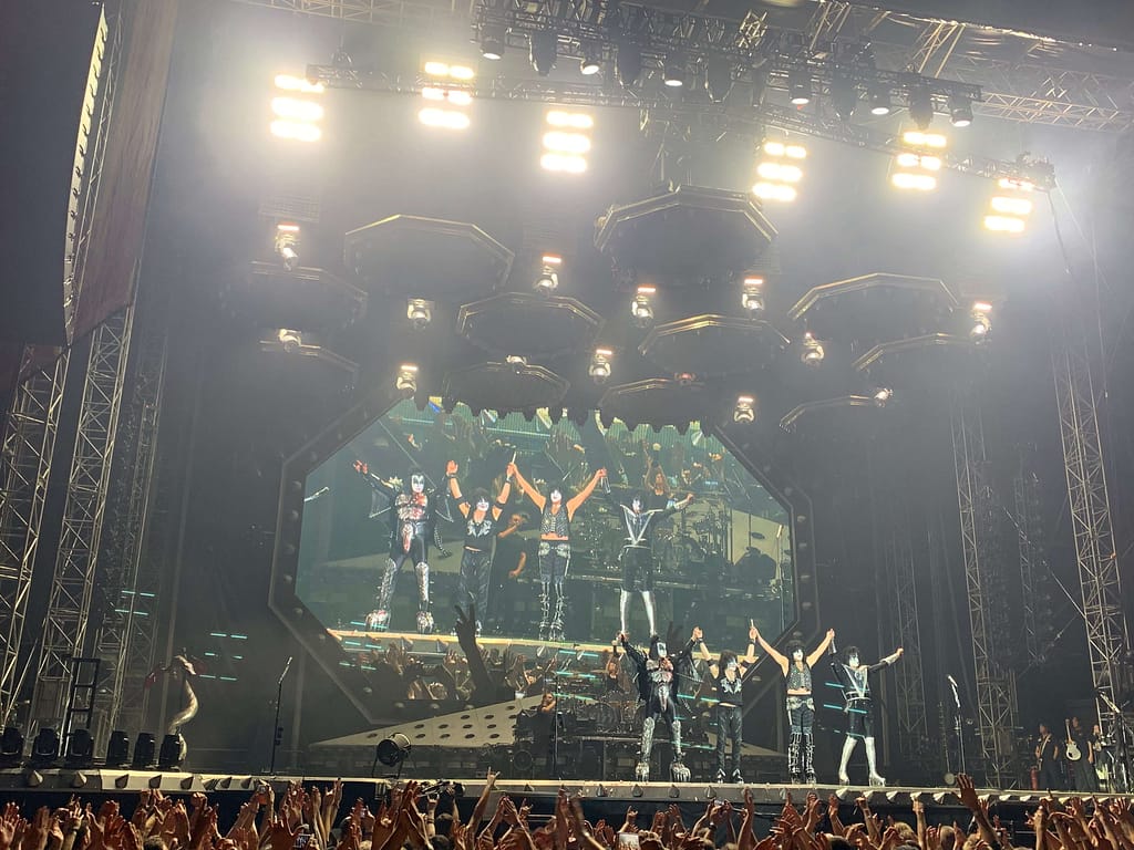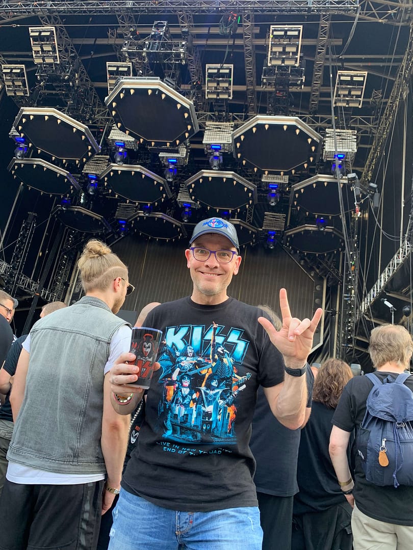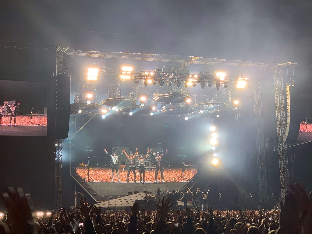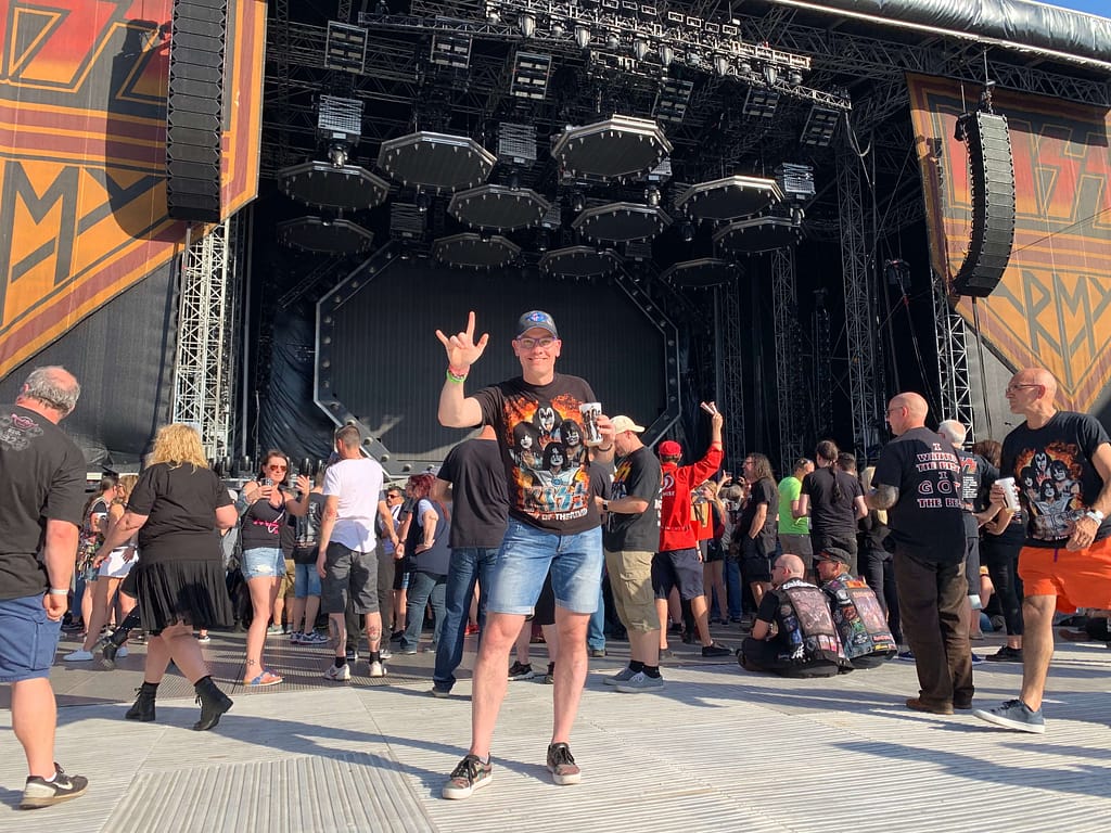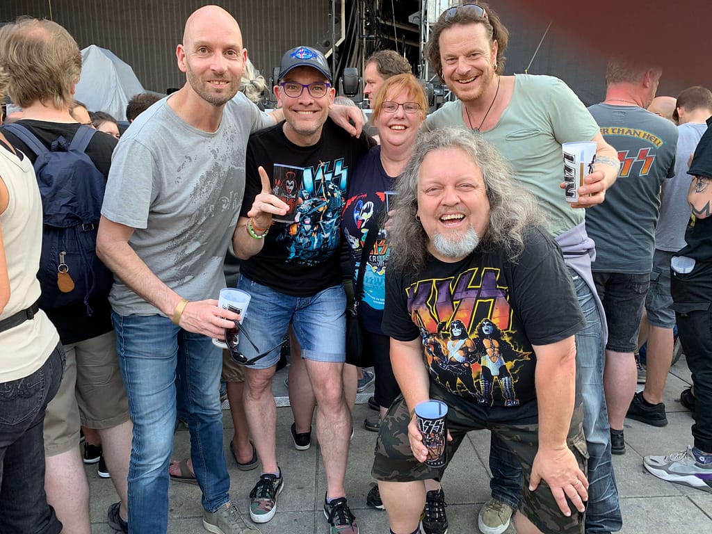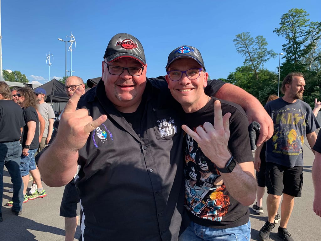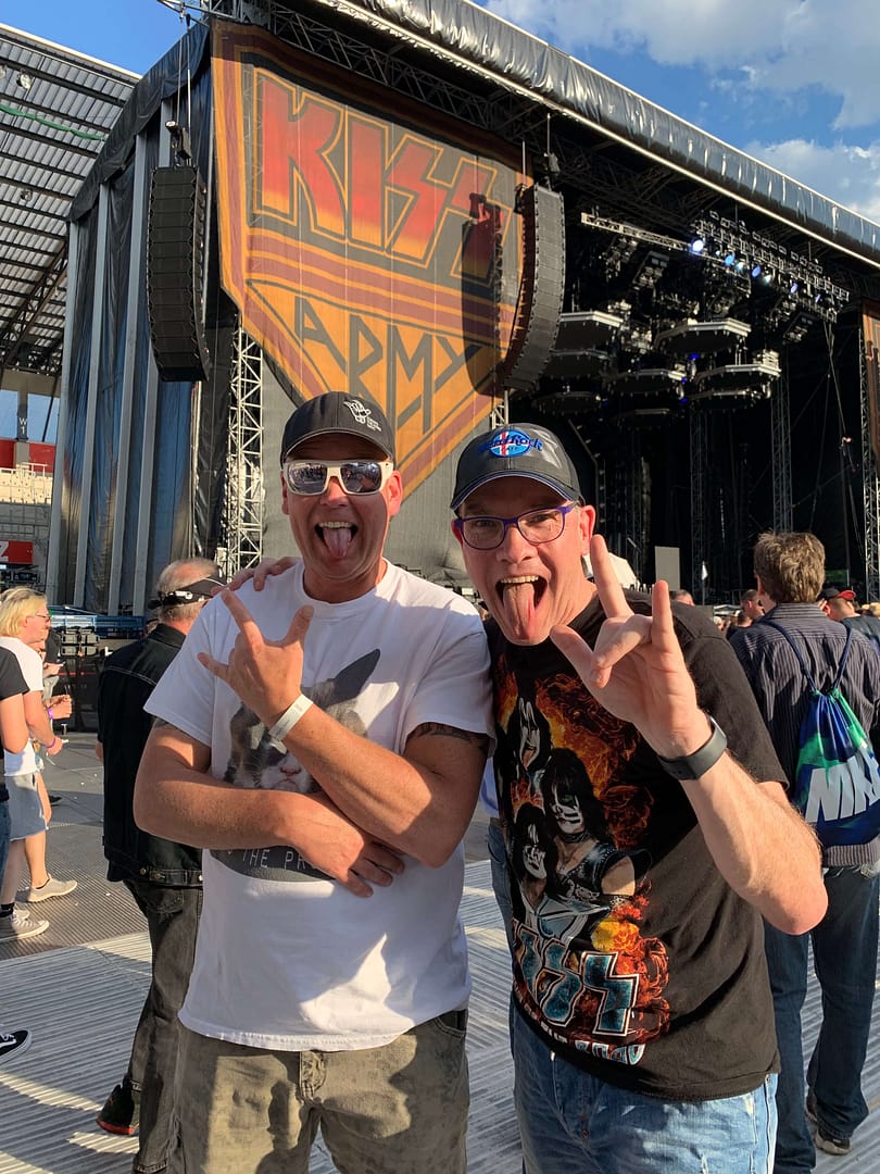 Vroeg in de middag knallen we naar Veldhoven, Silvy ophalen en op naar Essen! Voorafgaand aan de show is er afgesproken bij Star Diner te Essen, ongeveer 1,5 km van het Stadion Essen, waar het deze avond te doen is. Het is boven de 30 graden vandaag, erg warm en geen zuchtje wind! Bij Star Diner loopt het lekker vol met Nederlandse KISS fans, gaaf om iedereen weer te zien en te spreken! Gezellig! KISS connects people! Na een (vette) hap en enkele drankjes lopen we met z’n allen richting het Stadion! 2 juni 2019, show nummer twee van The End of the Road tour in Europa, mijn 60ste KISS concert!