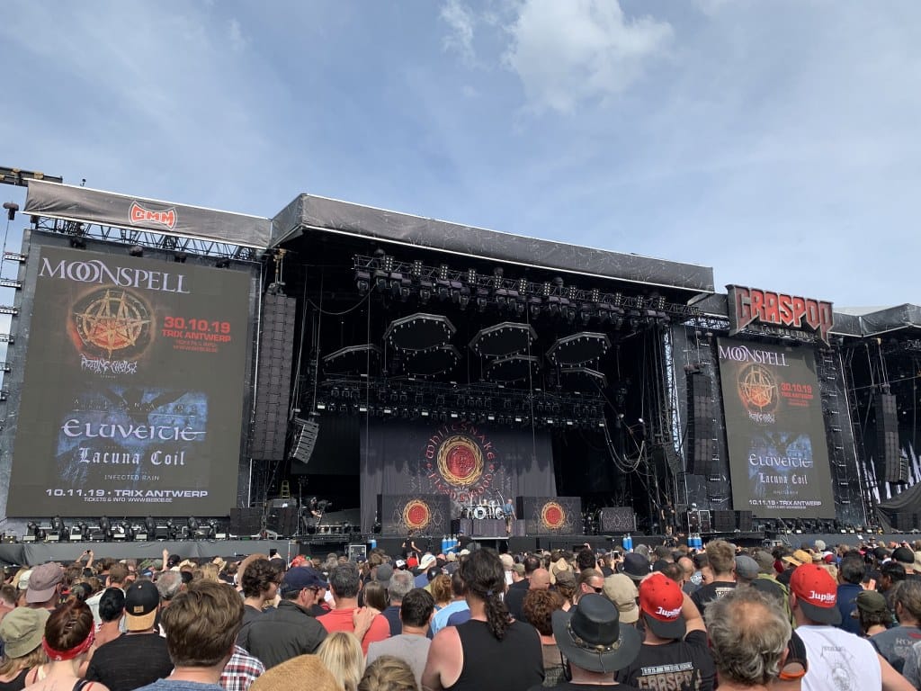 Eerst maar eens kijken naar Whitesnake, waar “vriend” David Coverdale zich met gemak door ene reeks aan Whitesnake klassiekers heen slaat. Een goed optreden met veel klassiekers! Details van de concerten laat ik graag over aan de vakbladen. We krijgen nog het nodige mee van Rob Zombie, niet helemaal mijn ding maar hij en zijn band zetten zeker een zeer vet en acceptabel optreden neer op de grasvlakte van Dessel. Eten en drinken kun je echt overal en in alle soorten en maten, grandioos! Op tijd waar bij de Mainstage terug waar Def Leppard gaat knallen, daar we enige tijd terug Def Leppard nog zagen in Nottingham en Newcastle, als headliner, benieuwd hoe ze de weide van Graspop gaan bespelen. Een grandioos optreden wat deze ronde niet vastgezet is rondom Hysteria, zoals dat in Engeland wel het geval. Klassiekers, een super goed optreden! Beide bands hebben het voordeel dat ze deze dag op het “KISS podium” mogen spelen!