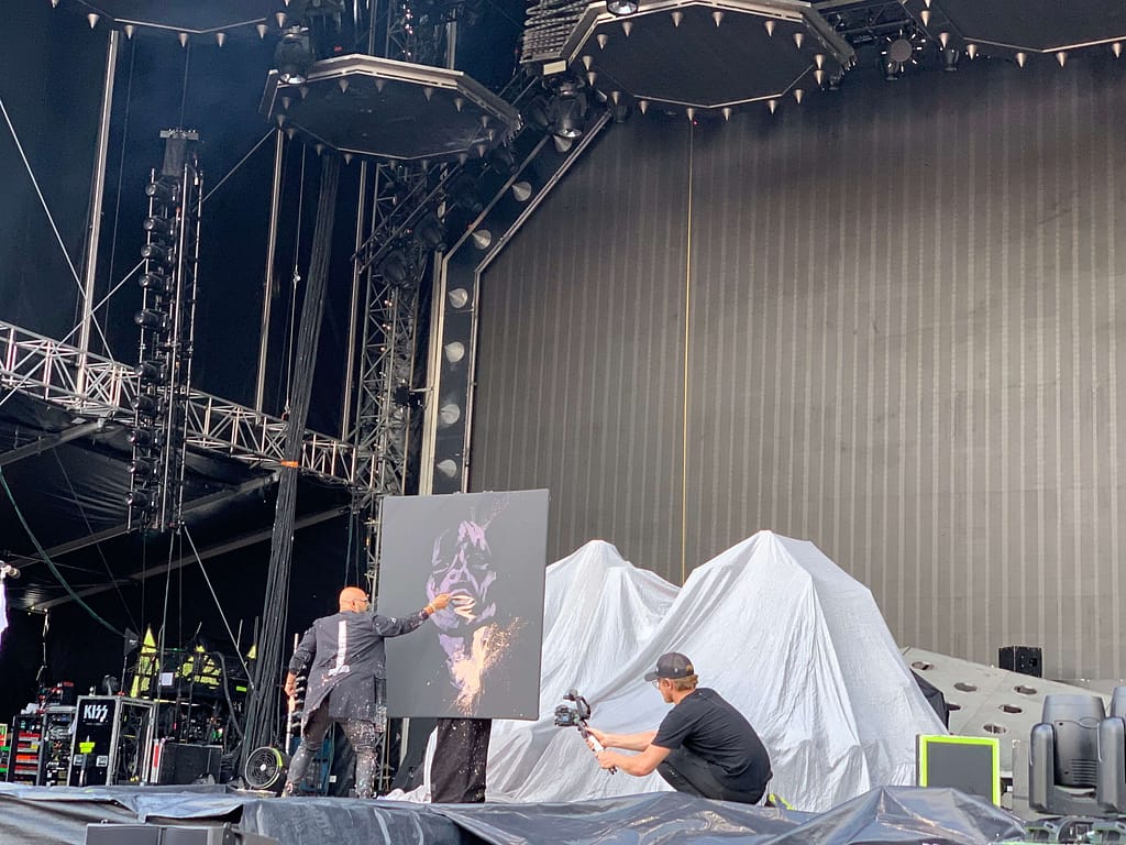 5 juni 2019, op naar Hannover. Rond 11.30 uur vertrekken we voor onze rit van zo’n 420 km, richting Best Western Parkhotel Kornsberg, ons verblijf voor deze nacht! Op pad met Silvy, Pim en Sander! Ad zien we in Hannover, sterker nog, die is al in ons hotel voordat wij er zijn. Na het inchecken is het dus hoogste tijd om te proosten om wederom een gaaf KISS avontuur. Dorst yep, het is immer 34 graden in Hannover, dit terwijl we met 20 graden vertrokken thuis. Temperatuur liep lekker gedurende de autorit. We slapen op een kleine 300 meter van de Expo Plaza, waar het KISS circus vanavond neerstrijkt! Na het eten, kun je prima in ons Hotel, lopen we richting Expo Plaza. Op naar een nieuw KISS avontuur! We hebben ook vanavond weer “Front of the Stage” tickets, we staan dichtbij, erg dichtbij! Rond 19.45 uur is het weer de beurt aan Artist David Garbaldi om deze ronde Alice Cooper, Mick Jagger en natuurlijk KISS op zijn doeken vast te leggen. Ik blijf het kunstig vinden en nog steeds geen slecht keuze als voorprogramma!
