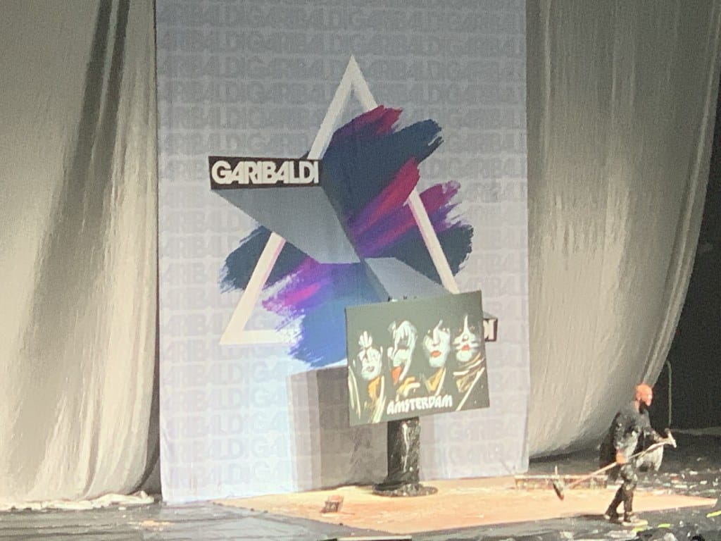 Als openings-act krijgen we David Garibaldi voorgeschoteld, voor ons geen onbekende omdat wij hem ook al zagen in Boston, New York en Philadelphia. Kunstenaar met Rockmuziek op het doek! Ozzy, Steven Tyler en uiteraard KISS komen aan bod. De meningen over dit voorprogramma zijn verdeeld, ik kan het zeker waarderen! Rond 20.50 uur knal Allright Essen…. weer uit de speakers! Helaas wederom wat aan de lichte kant tijdens de aanvang van de show! KISS blaast ons direct omver, het geluid is echt een heel stuk vetter dan in München, wat een verschil. Wat een energie weer! Ook deze avond staat KISS weer als een huis, Gene is echt geniaal!