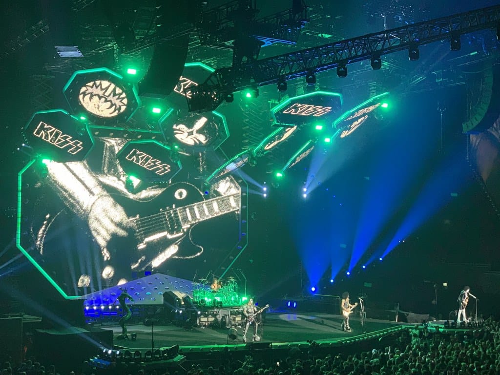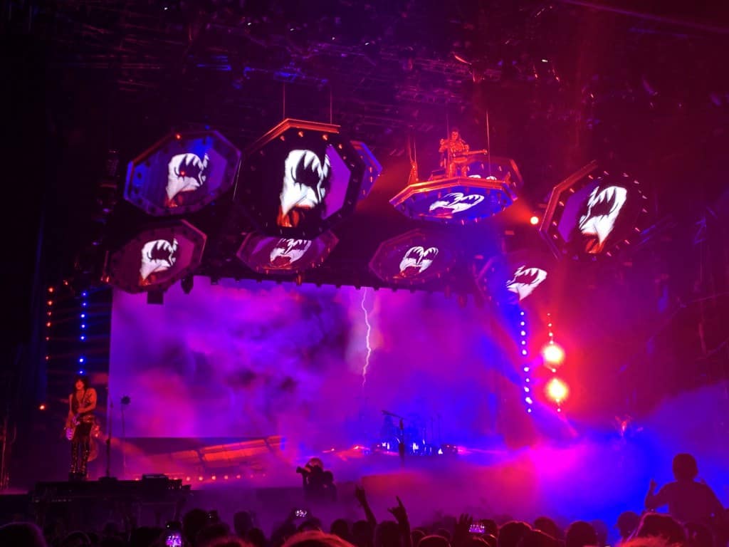 KISS zou vanavond om 20.45 uur starten maar het is 21.00 uur als de zaallampen uit gaan, een uitverkochte Ziggo gaat uit zijn dak nadat het wereldberoemde “KISS doek” valt! Super vet! De complete EU show er in, mijn inziens het beste concert van de EU tour wat ik tot dusver heb gezien. Complete setlist van Amsterdam zie je HIER. KISS in TOPvorm! Minpuntje is dat op de tribune iedereen blijft zitten en dat het staan ook niet gewaardeerd wordt! Dit is zeldzaam bij KISS concerten! Verder zat de sfeer er goed in en bespeelde Stanley het publiek zoals we gewend zijn van hem, TOP!