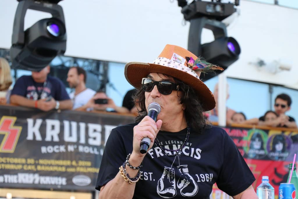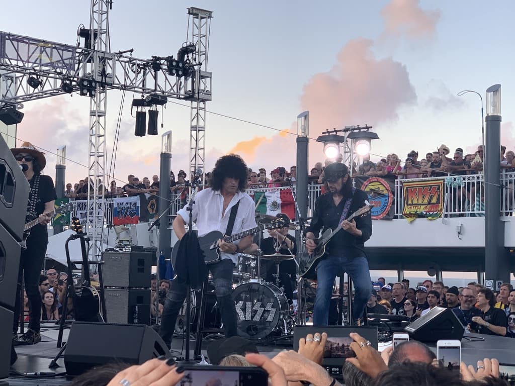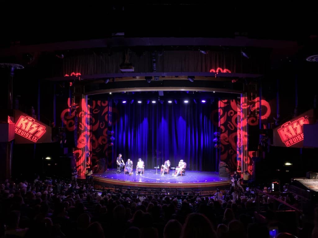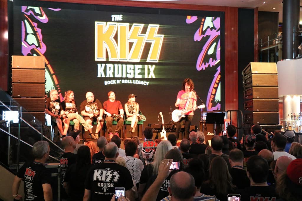 Buiten KISS om, ook dit jaar weer een diversiteit aan andere bands en activiteiten, nee op zo’n thema kruise kun je van halverwege de ochtend tot ver over middernacht genieten van activiteiten en (RocK)muziek. Op de andere KISS Kruises was op de eerste dag het Sail Away KISS concert op het pooldeck. Acoustisch of elektrisch, meer keuzes zijn er nog niet geweest. Daarnaast diverse interessante activiteiten met de bandleden, met als gevolg dat de Q&A, meestal op de laatste dag, minder goed werd bezocht. Er is dus tijdens deze Kruise voor gekozen om de Q&A tijdens het uitvaren in Miami te doen. Op dag 2 de Acoustische pooldeckshow. Tijdens de Q&A stellen fans uit de gehele wereld vragen aan de KISS leden. Je kunt hiervoor opgeven en een loting bepaald of jij een vraag kunt stellen? Die vragen worden vervolgens opgesteld en uitgereikt door Sixtman aan de kandidaten, wellicht moeten deze voorafgaand ook nog langs het management van KISS? Vragen zijn dan ook allemaal redelijk in lijn met elkaar, gezien de humor die KISS inbouwt, krijgen we toch een leuke Q&A!