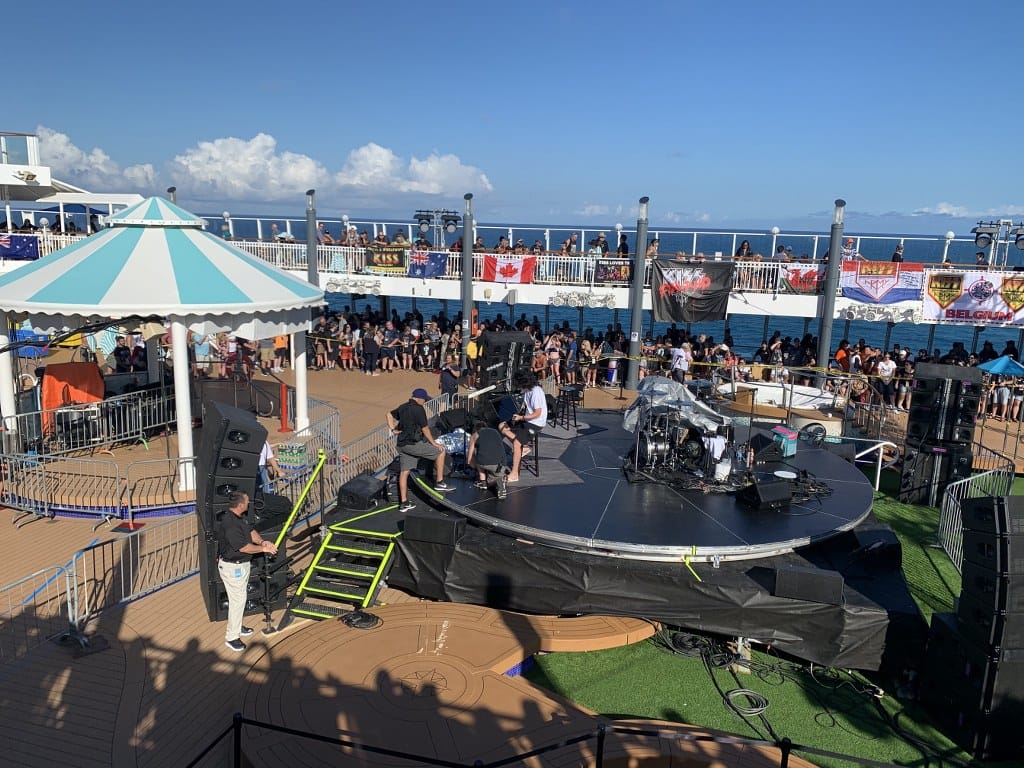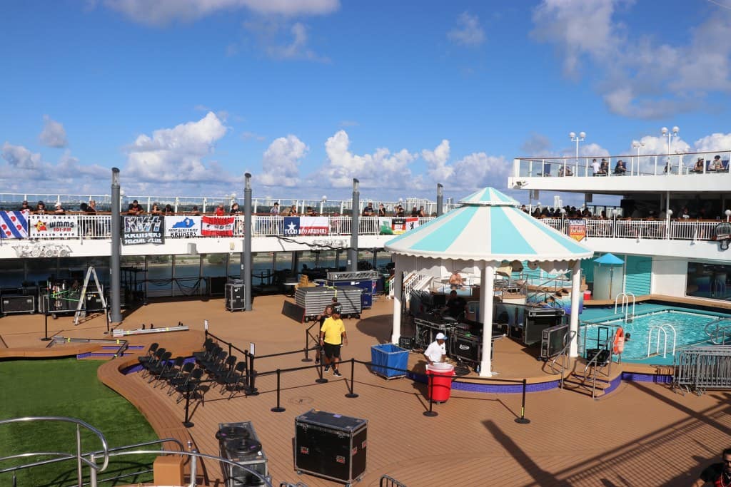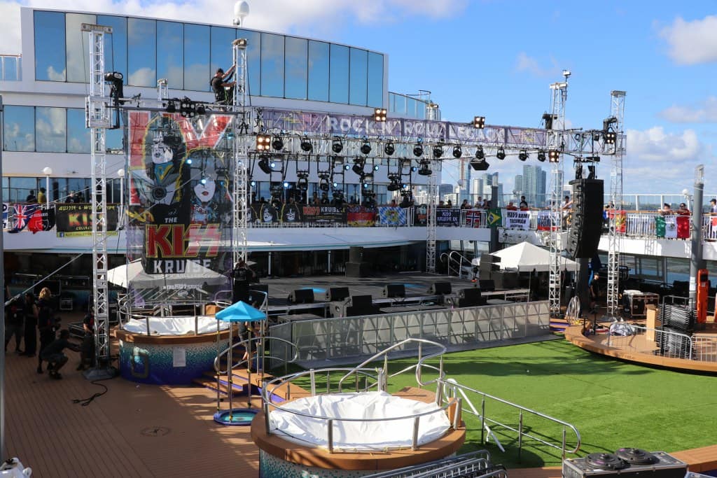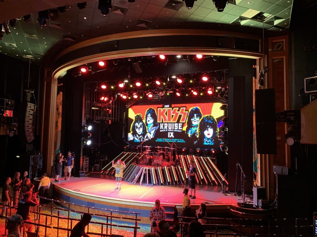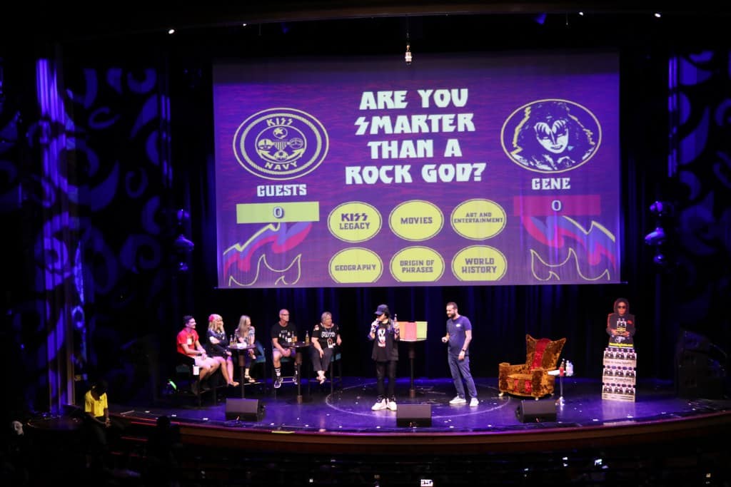 Buiten KISS om, ook dit jaar weer een diversiteit aan andere bands en activiteiten, nee op zo’n thema kruise kun je van halverwege de ochtend tot ver over middernacht genieten van activiteiten en (RocK)muziek. Op de andere KISS Kruises was op de eerste dag het Sail Away KISS concert op het pooldeck. Acoustisch of elektrisch, meer keuzes zijn er nog niet geweest. Daarnaast diverse interessante activiteiten met de bandleden, met als gevolg dat de Q&A, meestal op de laatste dag, minder goed werd bezocht. Er is dus tijdens deze Kruise voor gekozen om de Q&A tijdens het uitvaren in Miami te doen. Op dag 2 de Acoustische pooldeckshow. Tijdens de Q&A stellen fans uit de gehele wereld vragen aan de KISS leden. Je kunt hiervoor opgeven en een loting bepaald of jij een vraag kunt stellen? Die vragen worden vervolgens opgesteld en uitgereikt door Sixtman aan de kandidaten, wellicht moeten deze voorafgaand ook nog langs het management van KISS? Vragen zijn dan ook allemaal redelijk in lijn met elkaar, gezien de humor die KISS inbouwt, krijgen we toch een leuke Q&A!
