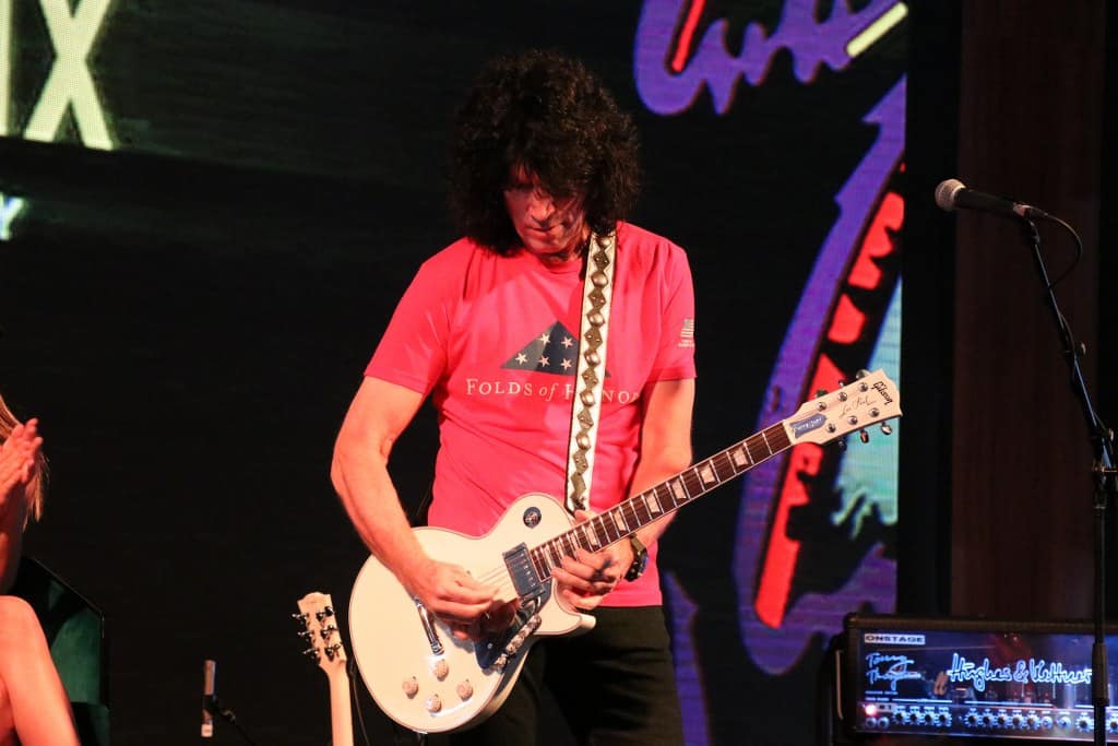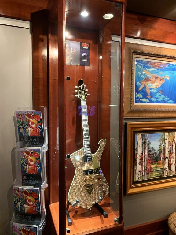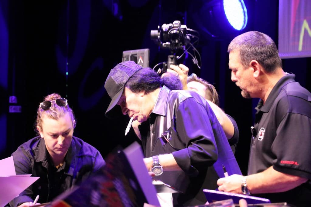 Bij terugkomst aan boord is het snel douche want het programma laat niet veel relaxtijd na deze Bob Marley Experience. Name that solo van Tommy Thayer staat op het programma in het Atrium. Tommy speelt enkele KISS solo’s, dus zonder de rest van de muziek. Soms best lastig om dan direct te horen om welk nummer het precies gaat. Een Kruisers-panel mag het opnemen tegen elkaar. Tommy is een super gozer en neemt nadien uitgebreid de tijd om iedereen te voorzien van zijn handtekening-wensen. Ik heb mijn HRC Madrid (2018) laten signeren, eerder had ik daarop Eric’s handtekening al gescoord. M’n plaat is compleet!